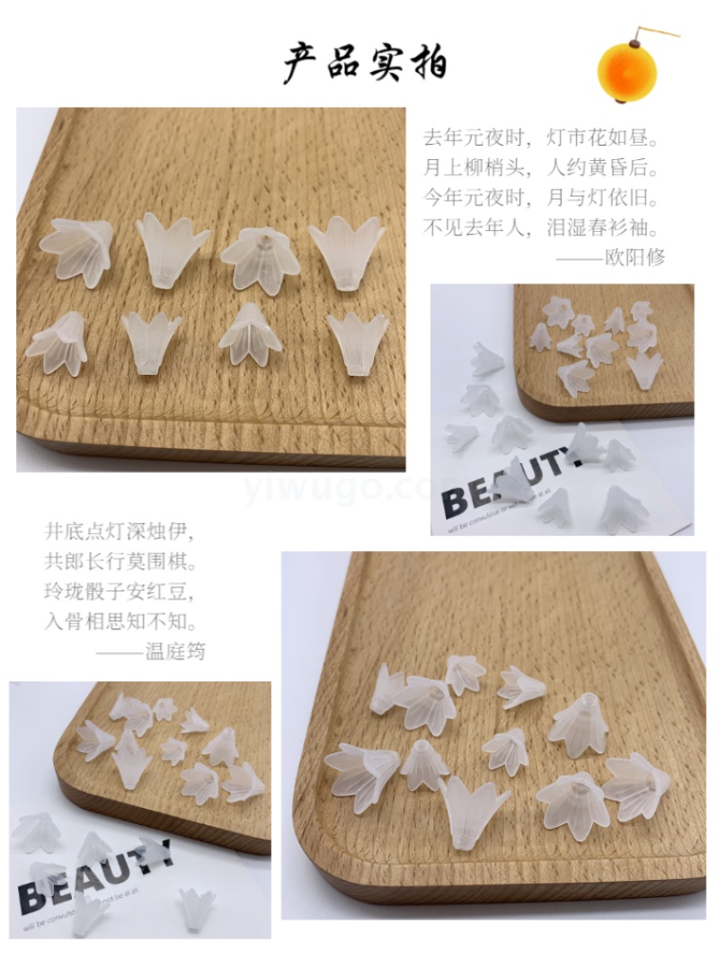 厂家直销亚克力新品时尚磨砂喇叭花 diy头饰百搭制作古风发簪挂件 投诉