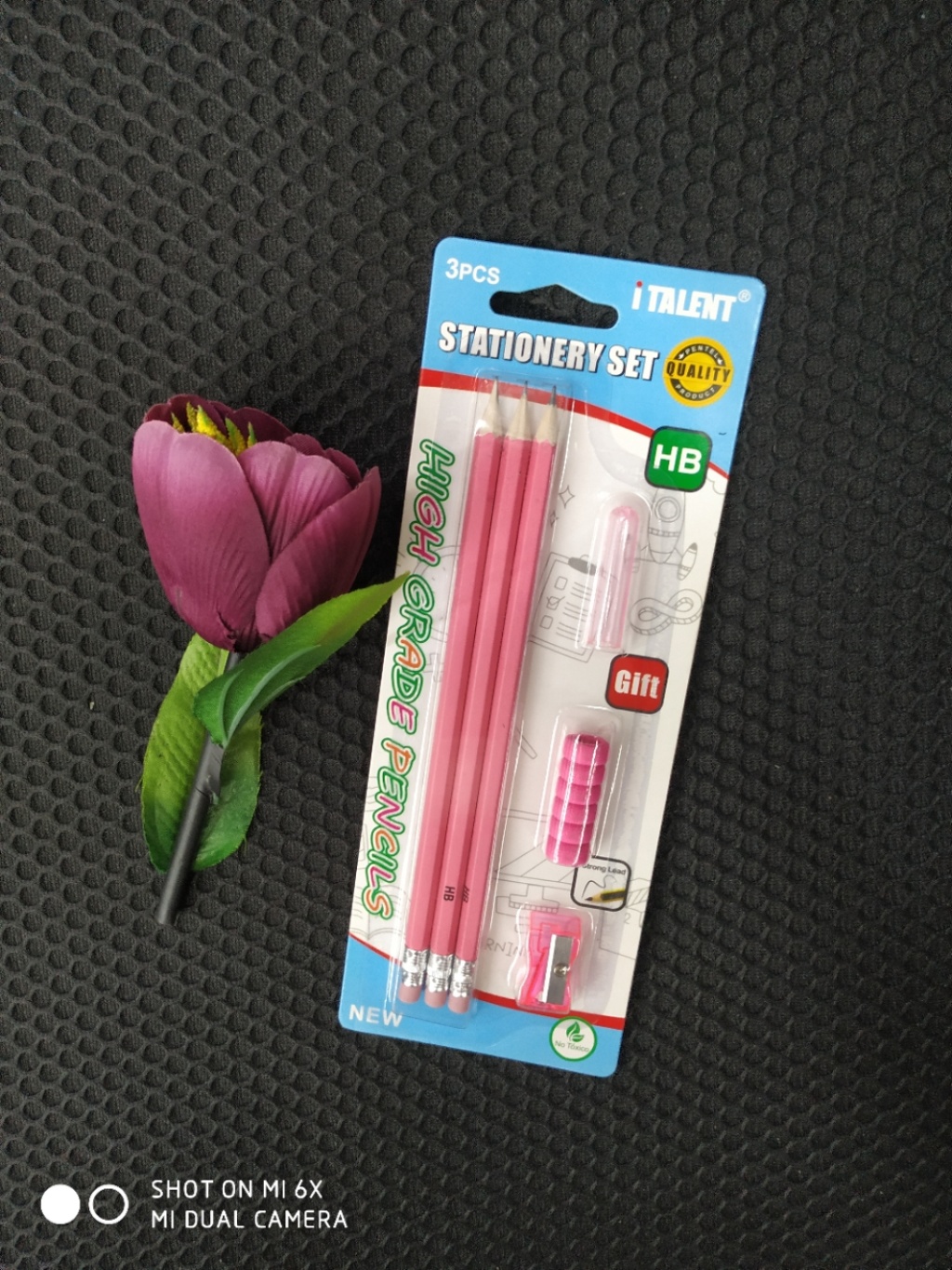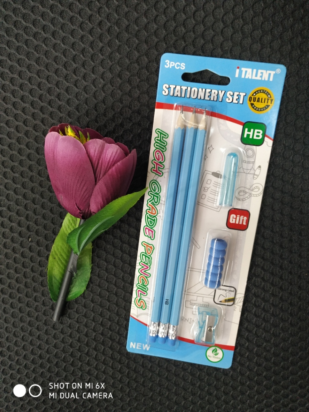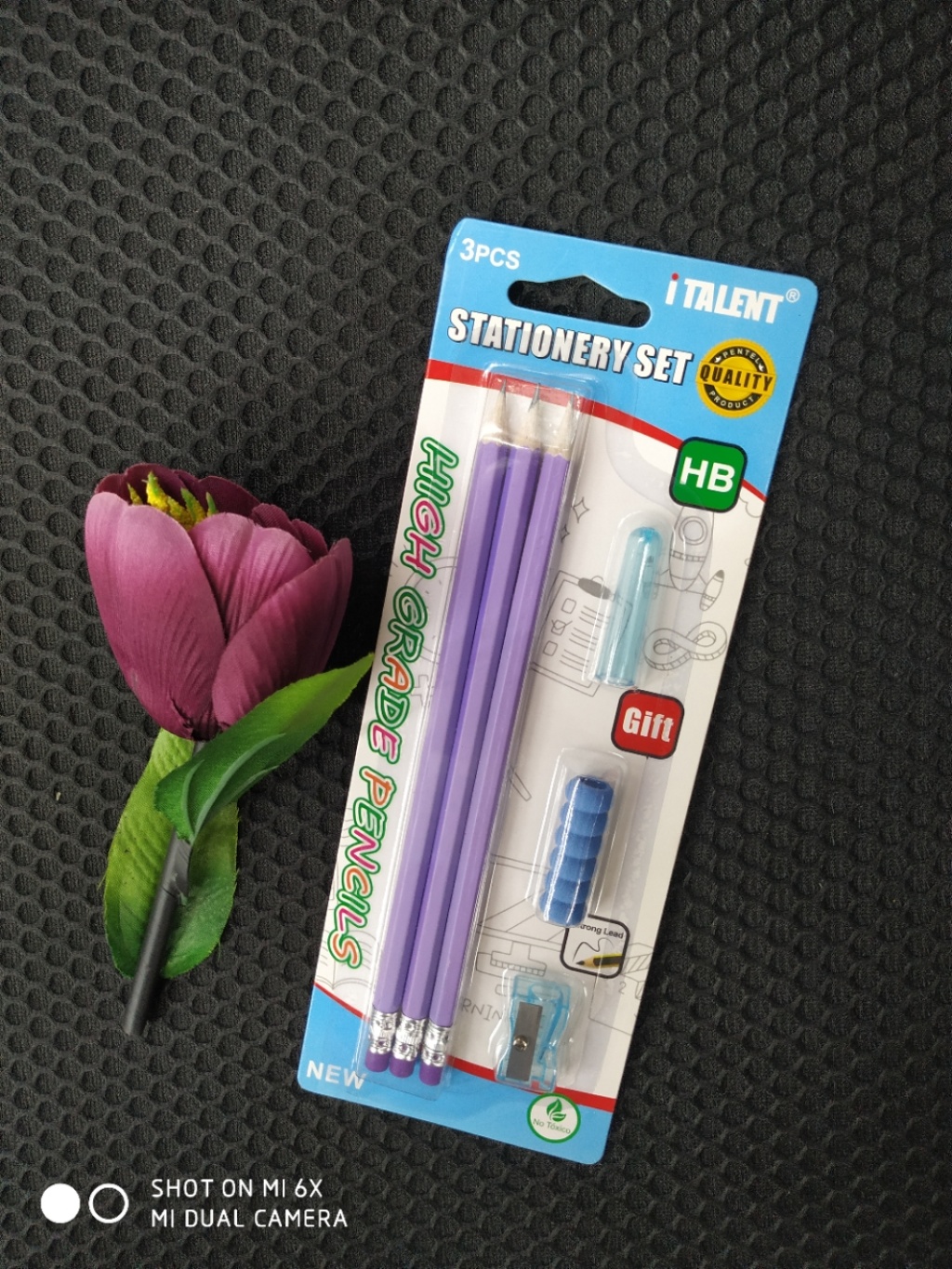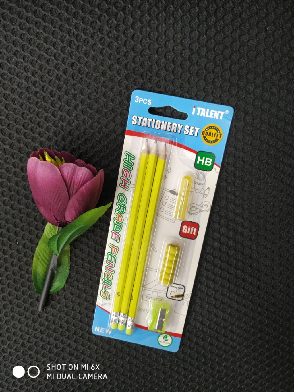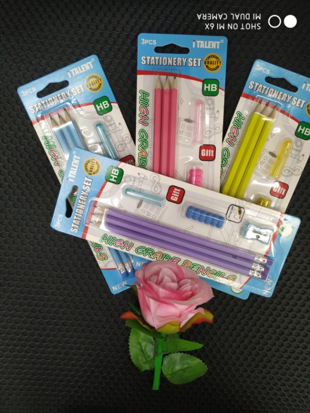 组合铅笔套装,吸卡包装,内含HB铅笔三支,笔帽一个,握笔器一个,卷笔刀一个,适合三岁以上孩童,无铅毒,环保材料,自主品牌,自主研发,仿冒盗图必究。支持小额少量批发,支持混款小量批发,联系电话:15267360930 微信同步……欢迎咨询订购