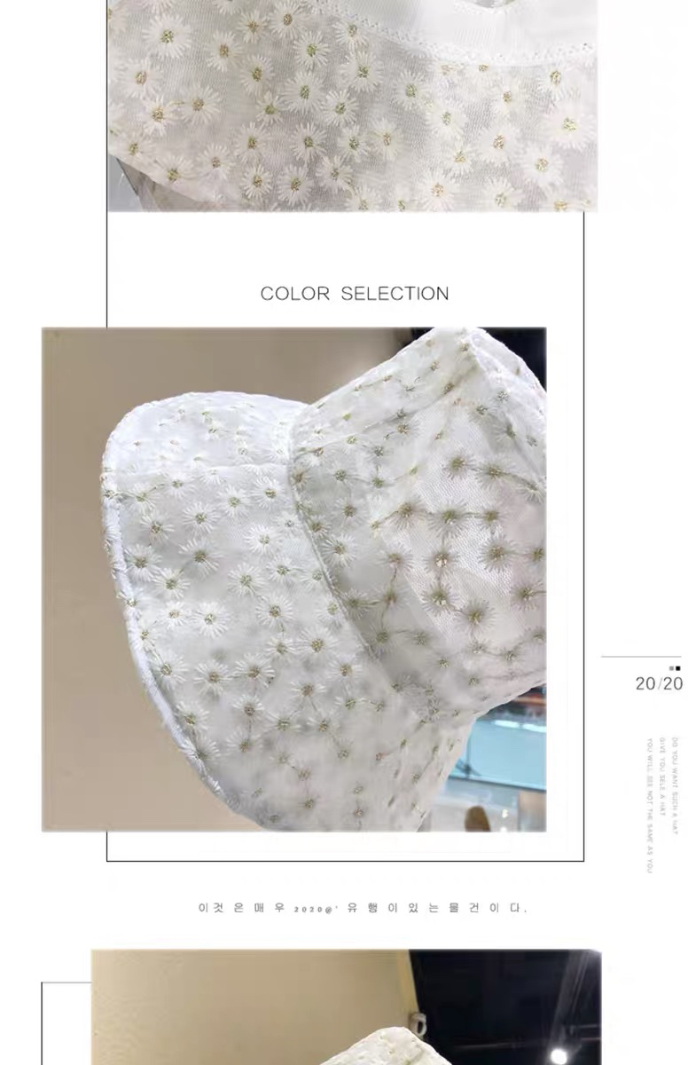 日系刺绣雏菊小菊花渔夫帽薄款夏季蕾丝遮阳帽 投诉