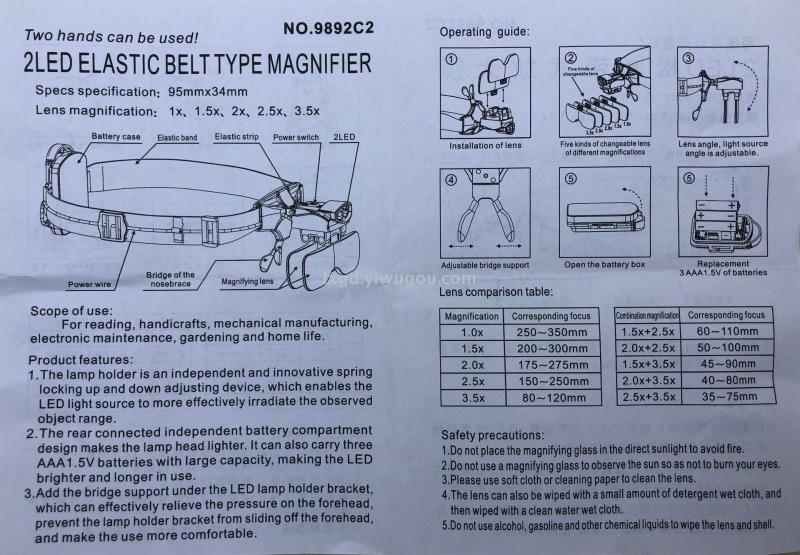 生产加工、经销批发的个体经营,放大镜、支架、配件、