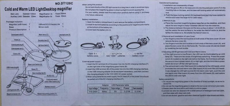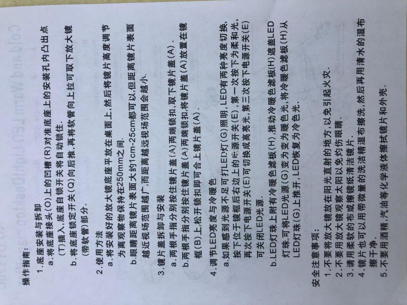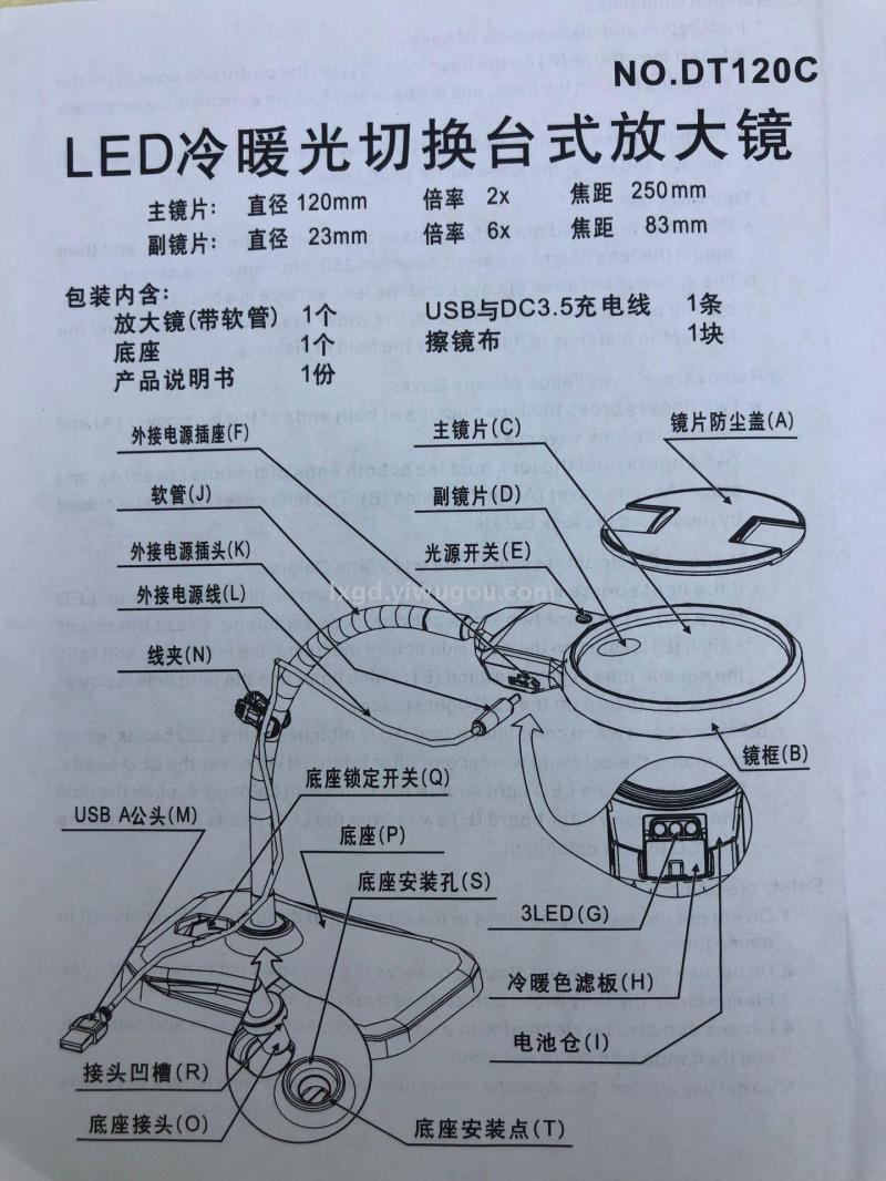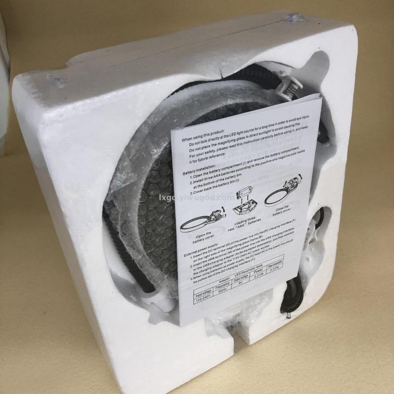 包装方式:放大镜带软管,底座,线夹2个,防层盖,充电线,擦镜布,中英文说明书,泡沫底槽,吸塑,彩盒装