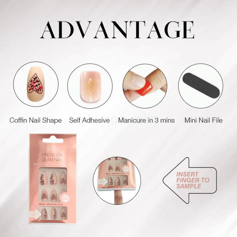 【包装方式】24片彩印甲贴背胶贴+一木片搓 入一吸塑盒 12盒入一OPP袋 480盒/件