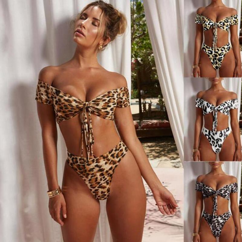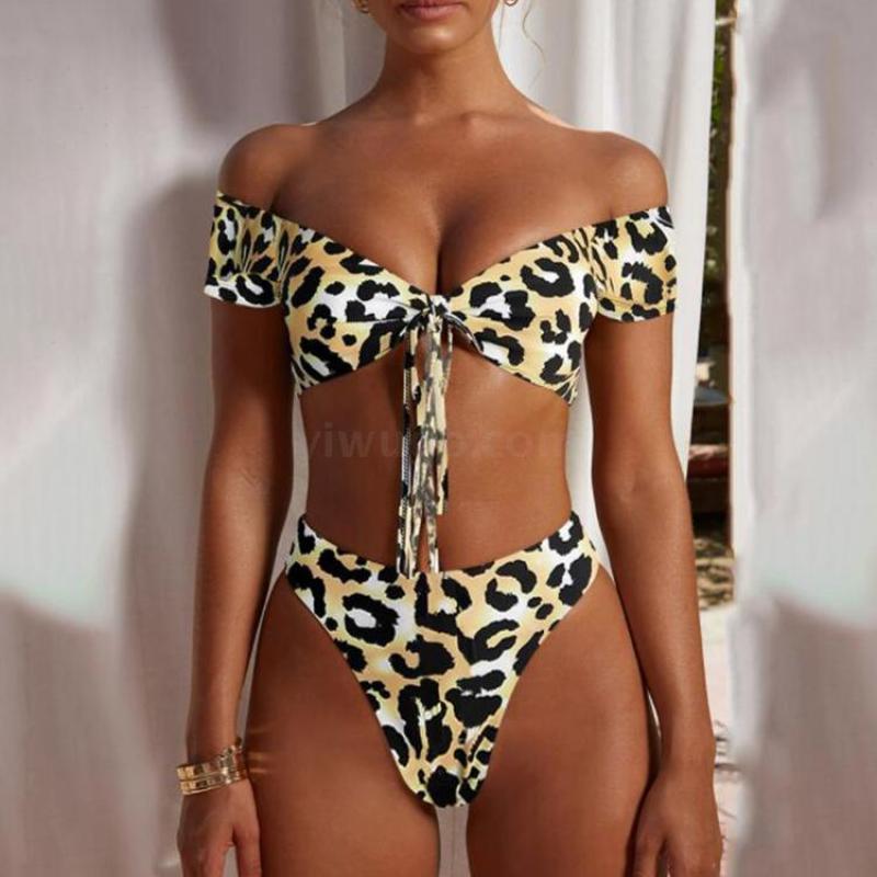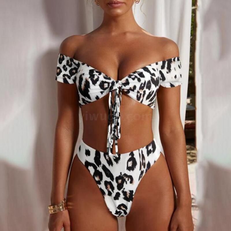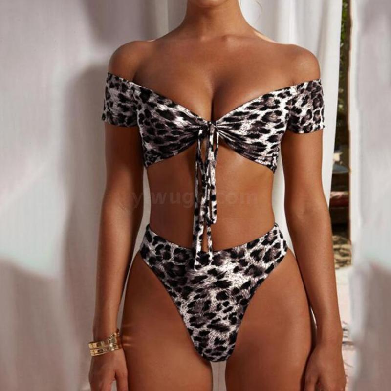 泳装外贸新款性感豹纹印花高腰女士分体泳装锦纶品质厂家直销