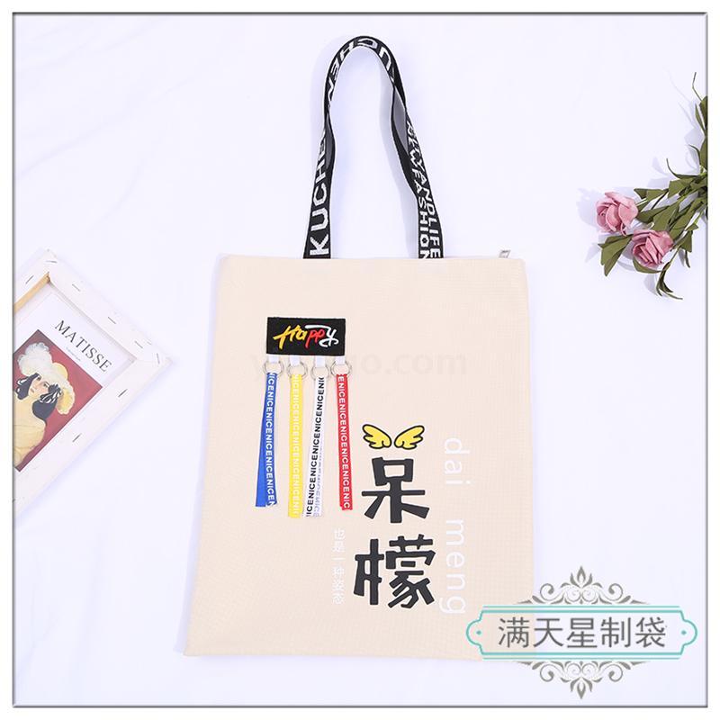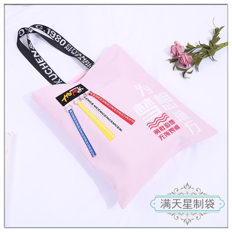 单肩大容量手提袋帆布袋卡通飘带收纳袋韩版个性购物袋手提包