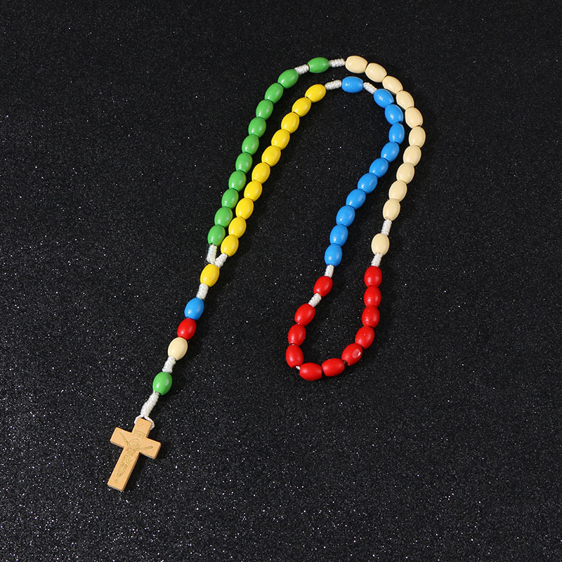 宗教基督教耶稣木质彩色珠子项链