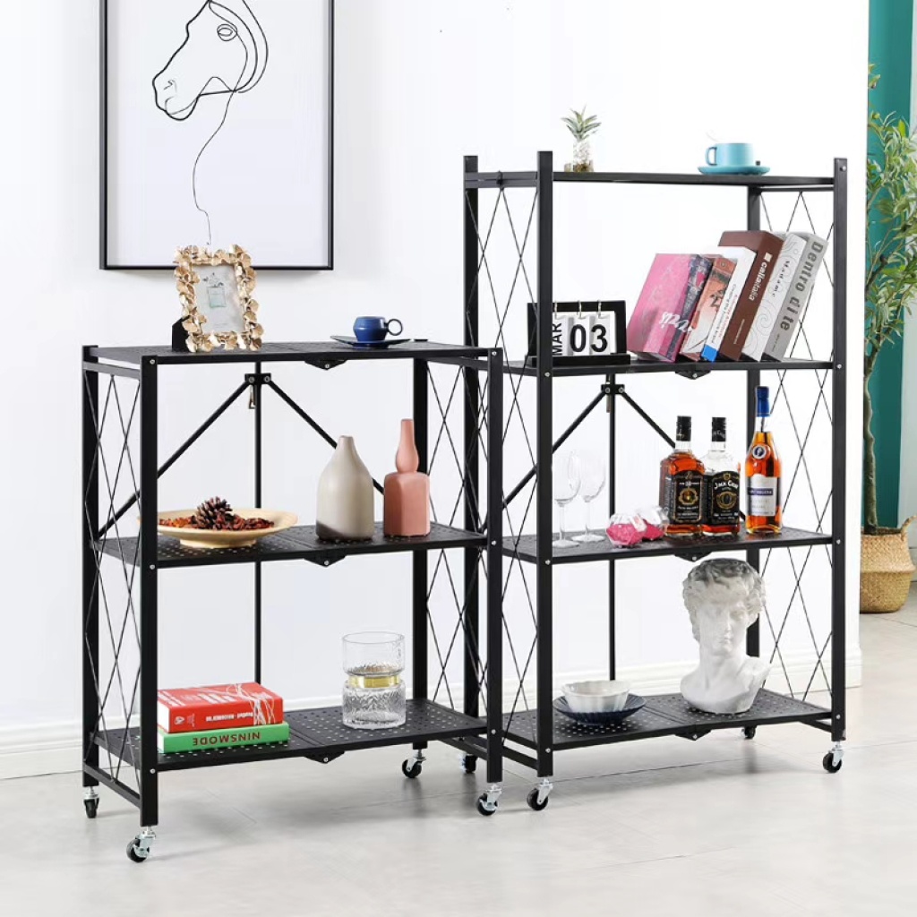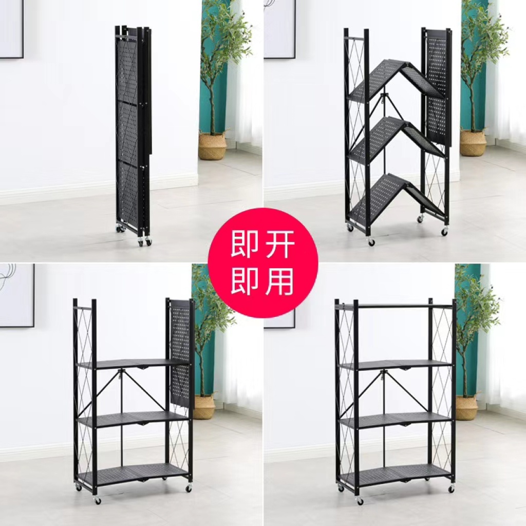 家用免安装厨房客厅置物架阳台落地式多层收纳烤箱储物架子可折叠