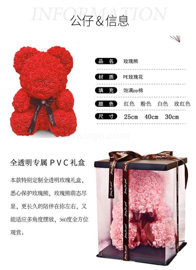 pe玫瑰花美国小熊礼盒泡沫花熊生日情人节礼物批发现货 English | 投诉