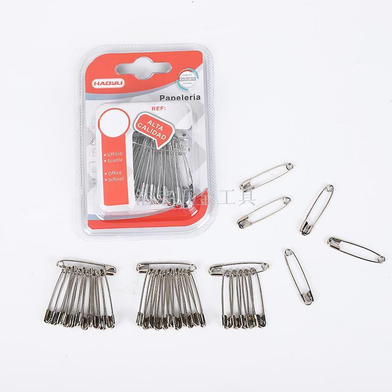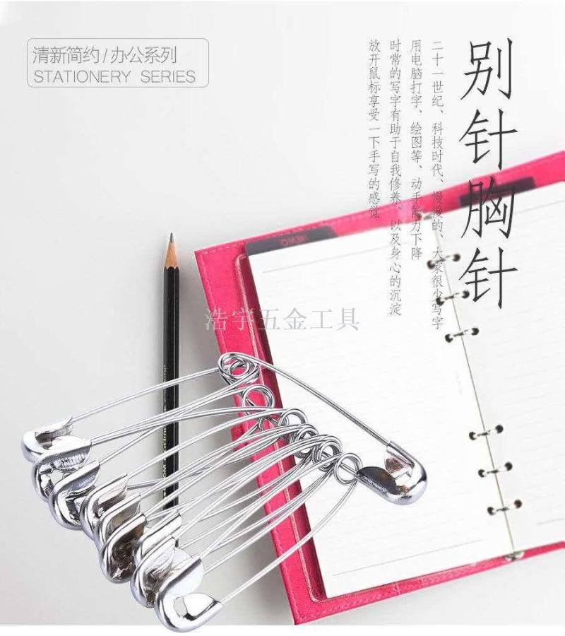 产品品牌 :浩宇五金工具                                                            产品品名:银色别针                                                                                                            产品规格:1#别针48PCS   2#别针 36PCS   3#别针 24PCS   4#别针 24PCS                                                                                                   装箱明细240卡每箱,12卡每中盒