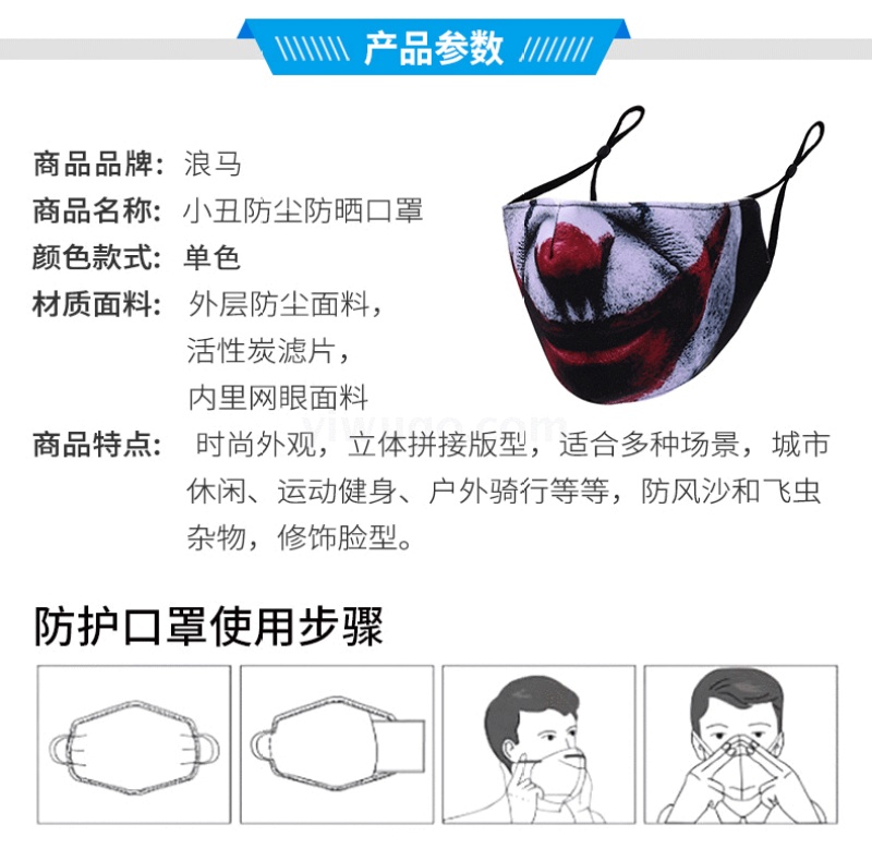 小丑口罩 时尚印花口罩PM2.5防尘防雾霾可水洗面罩可定制厂家直销 投诉