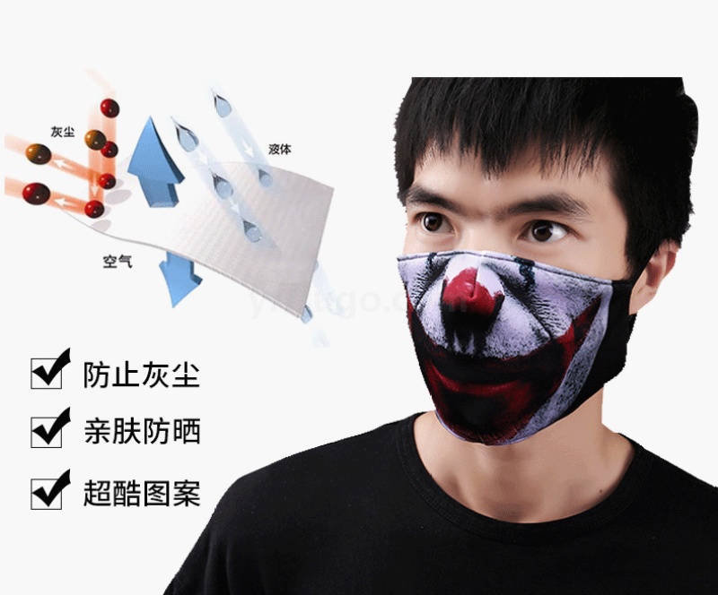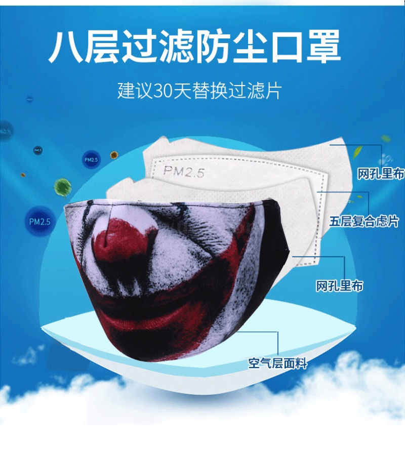 小丑口罩 时尚印花口罩PM2.5防尘防雾霾可水洗面罩可定制厂家直销