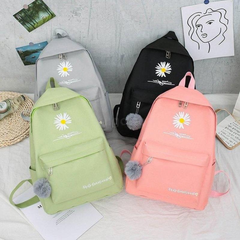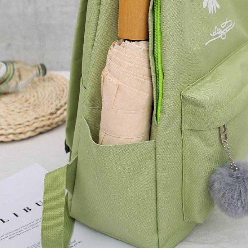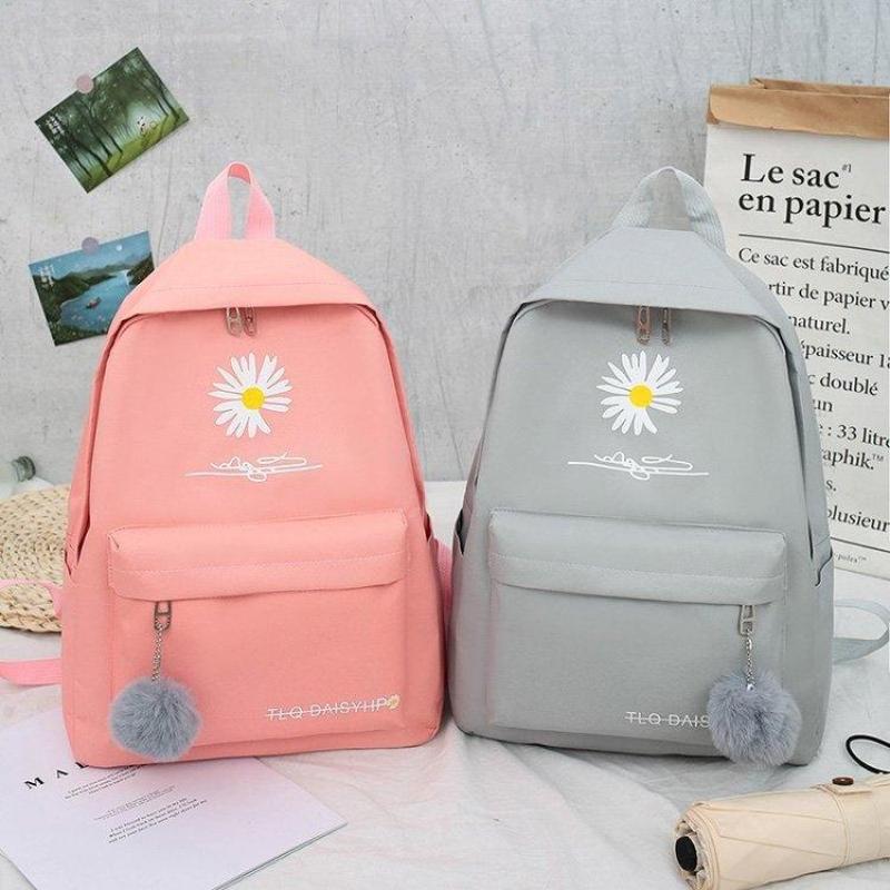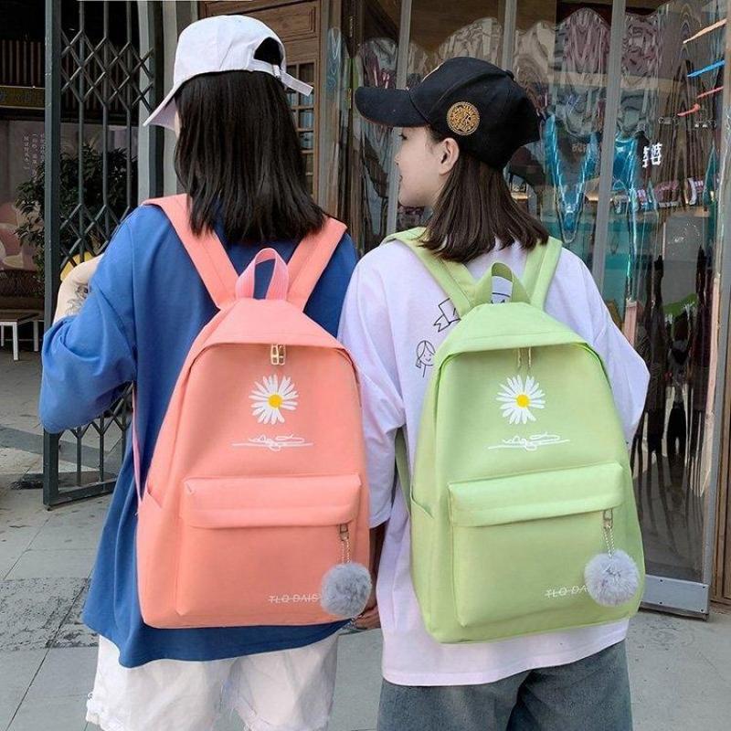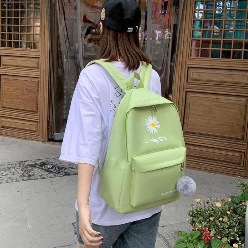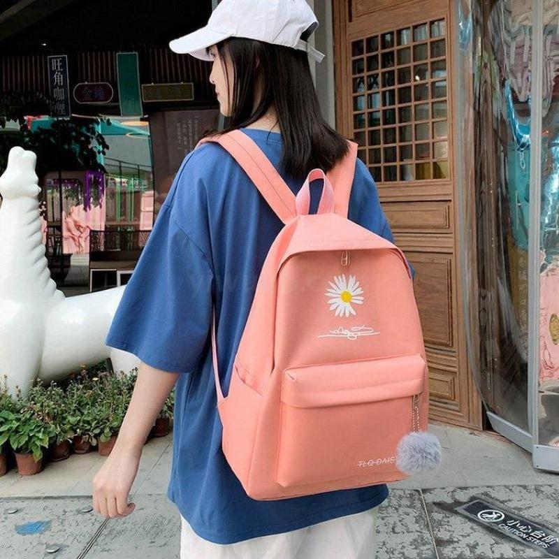 新款书包女韩版双肩包小学生大容量四件套帆布背包