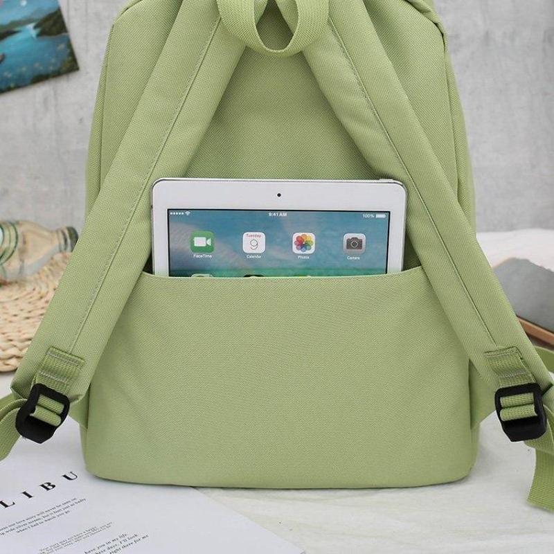 新款书包女韩版双肩包小学生大容量四件套帆布背包 投诉