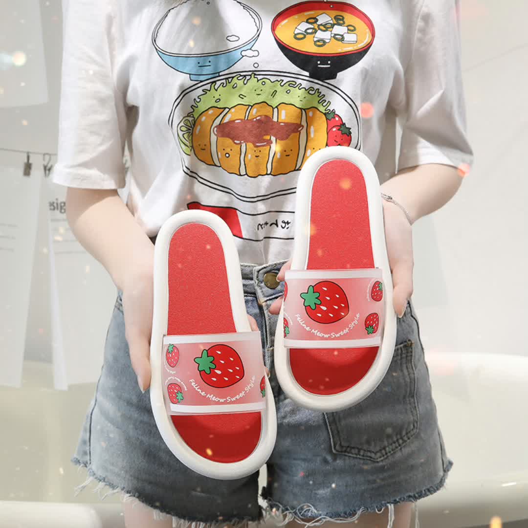现货韩版拖鞋女夏时尚外穿百搭网红水果凉鞋ins室内浴室一字拖鞋 English | 投诉