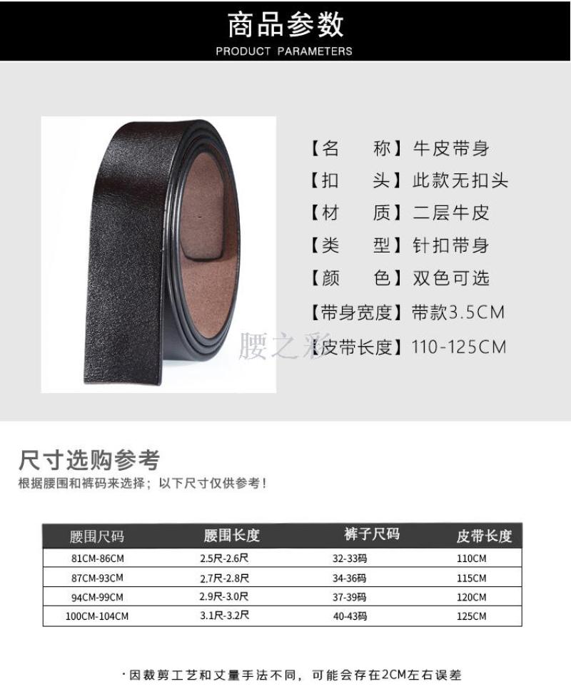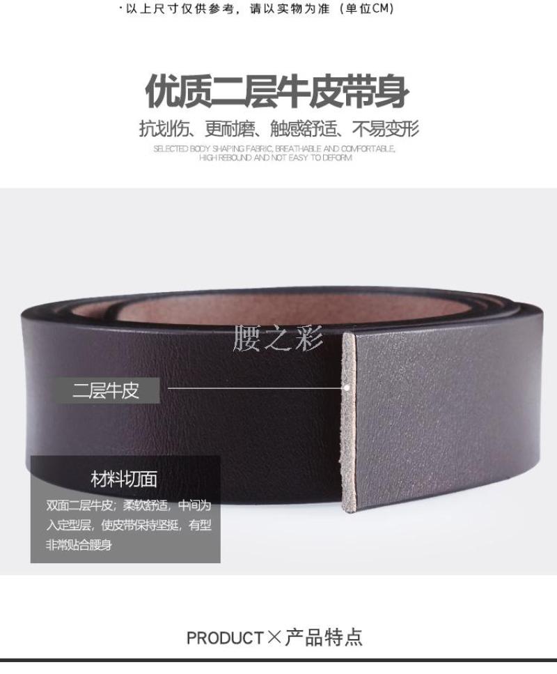 无扣头优质牛皮带身3.5CM新款针扣皮带条 厂家直销青年裤腰带批发 English | 投诉