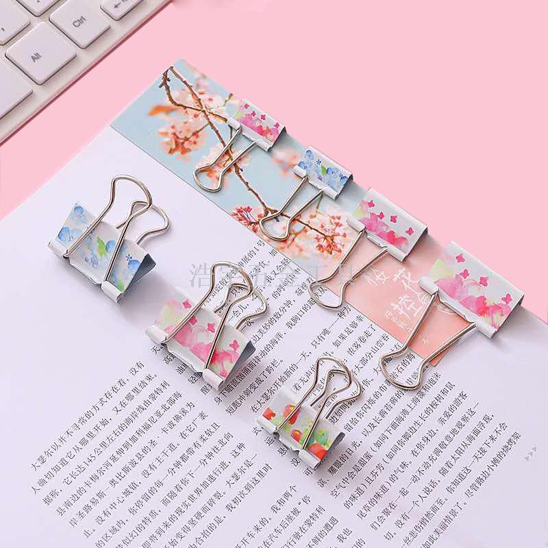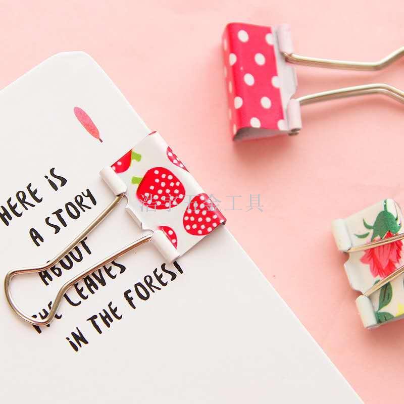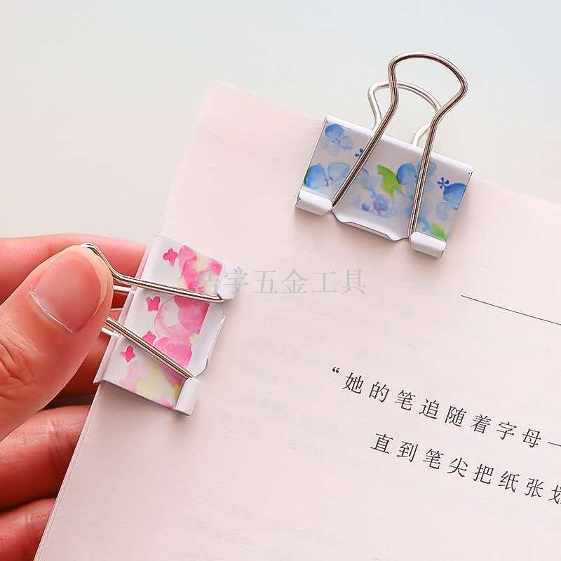 文具甜美小清新印花长尾票夹文艺复古文件试卷整理夹子双泡包装
