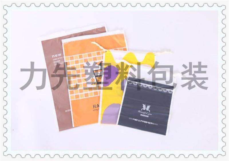 产品名称:时尚多彩配色塑料袋 经典礼品袋抽绳时尚手提袋 收口服装店袋子