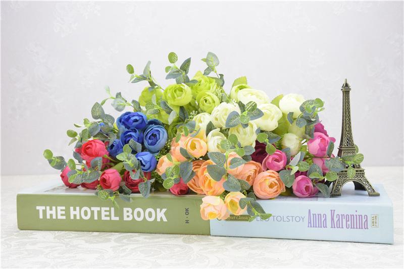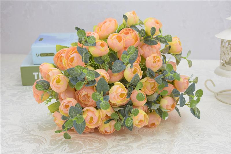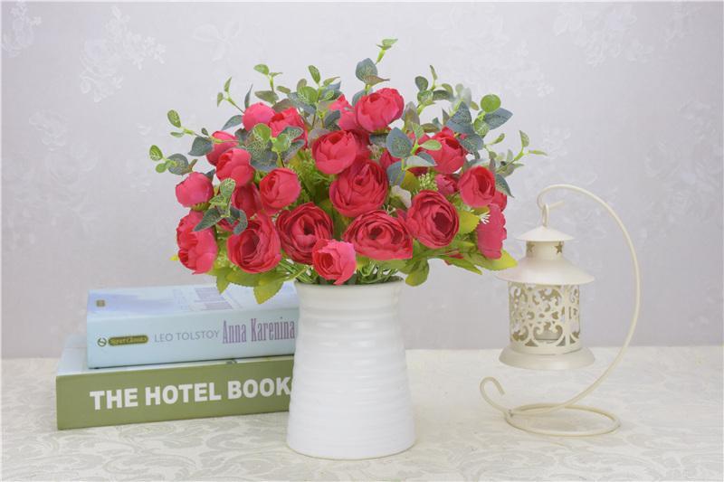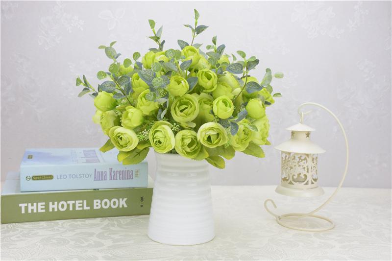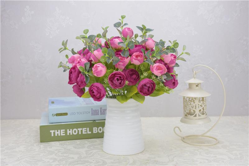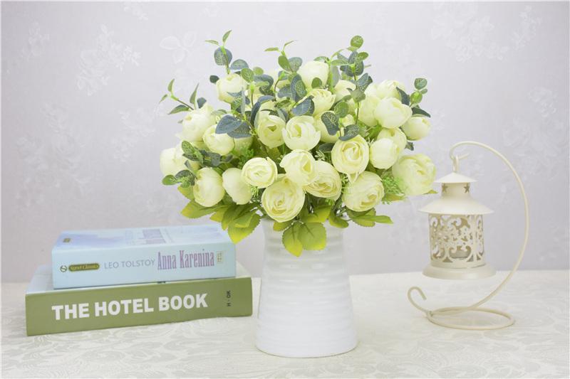 工厂直销欧式高档仿真春茶花五叉10头春色茶玫工程装饰摆放小把花 English | 投诉