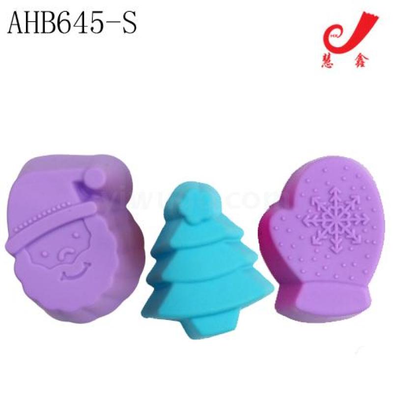 AHB645-S 袋装6PC硅胶蛋糕模(圣诞树,圣诞老人,手套三款混装) 1箱=360袋