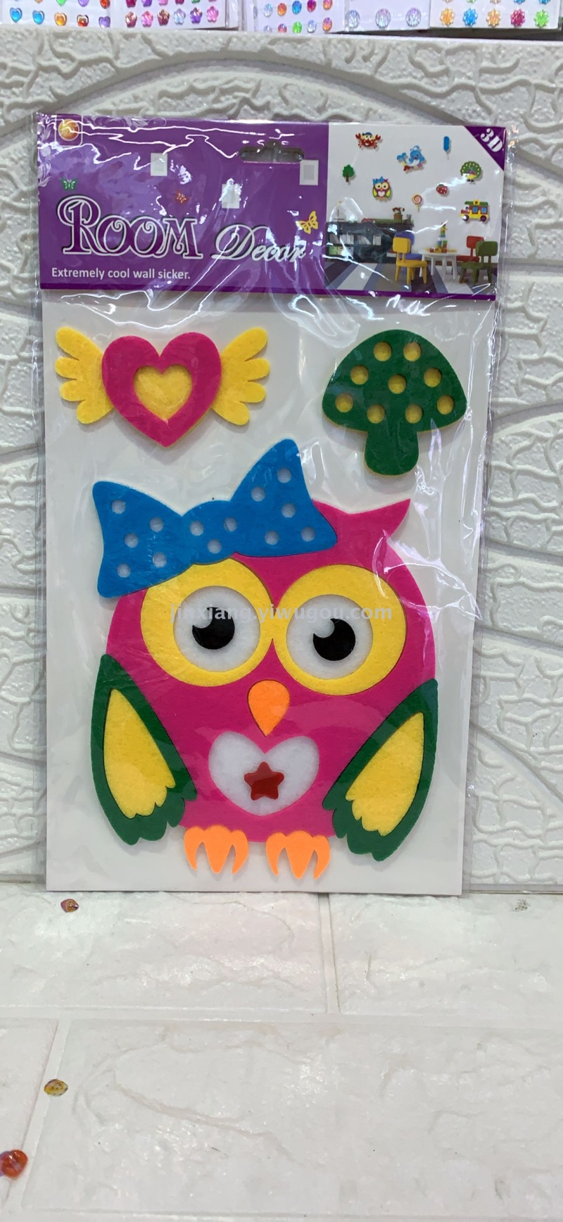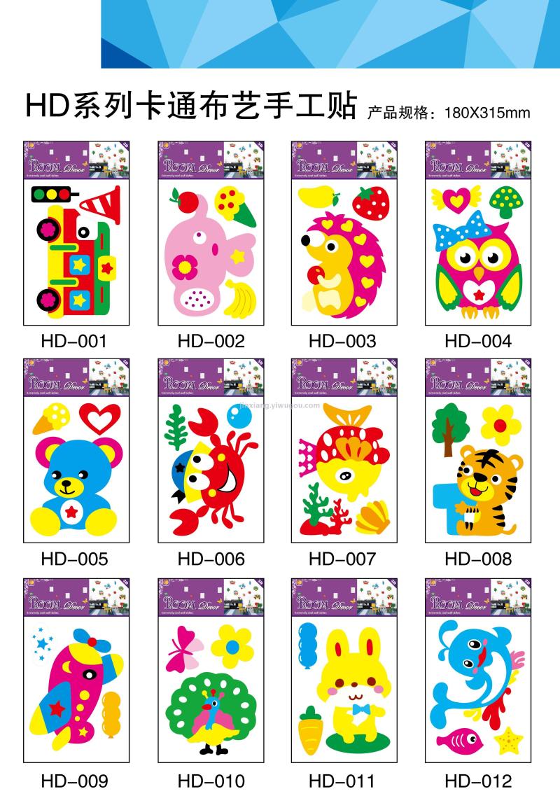品名:卡通猫头鹰小熊海豚老虎刺猬飞机螃蟹 3D立体手工装饰毛毡布墙贴