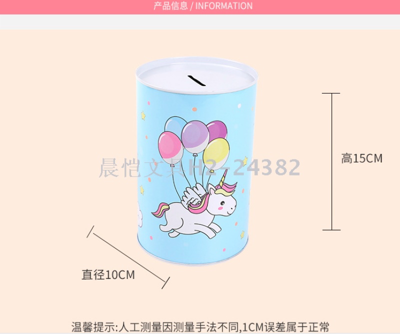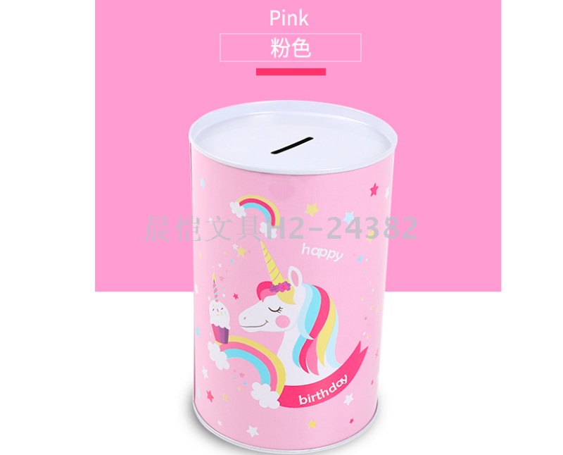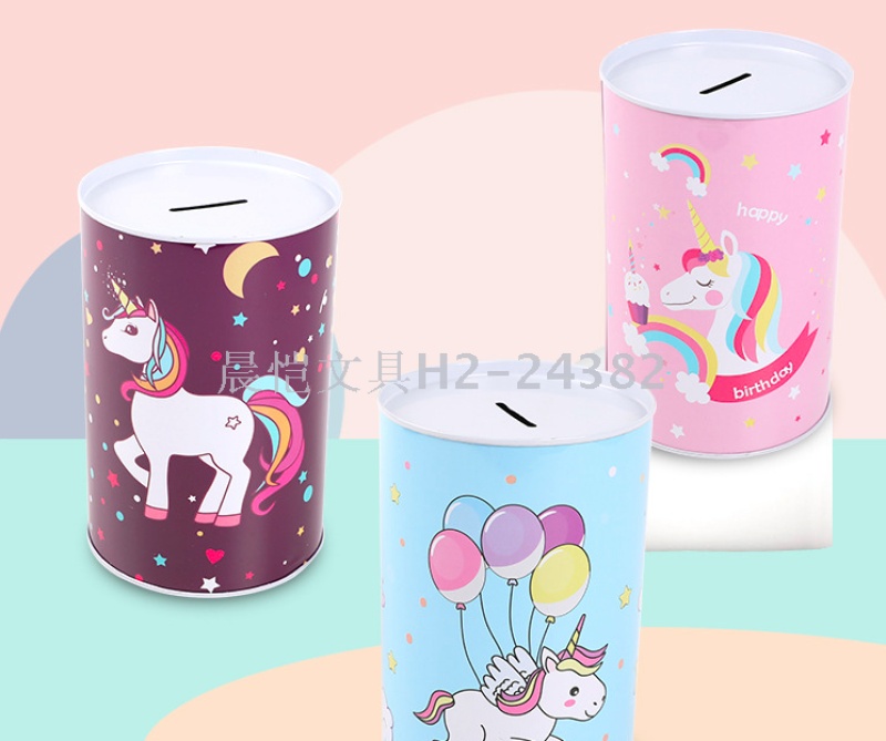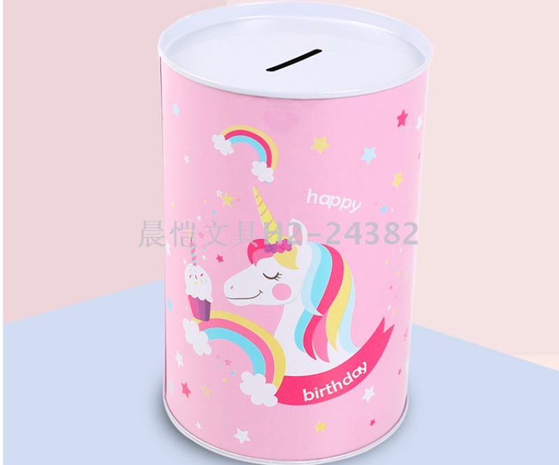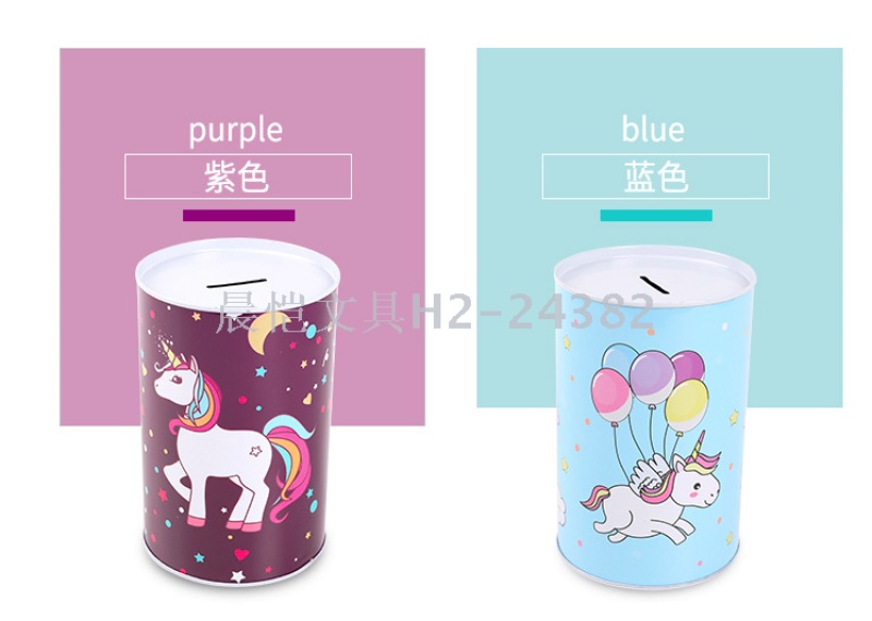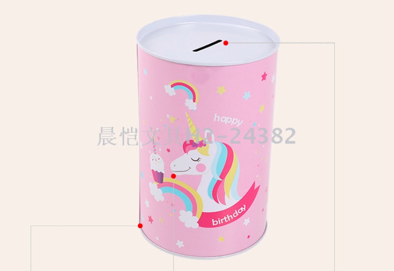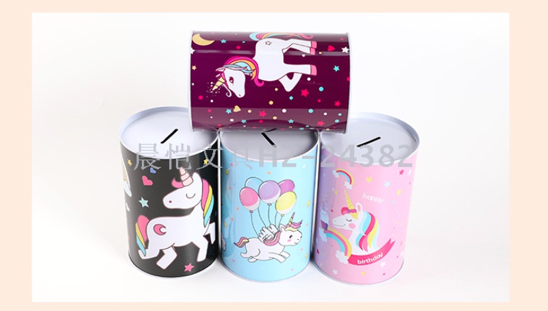 创意礼品摆件马口铁独角兽圆筒存钱罐储蓄罐 English | 投诉