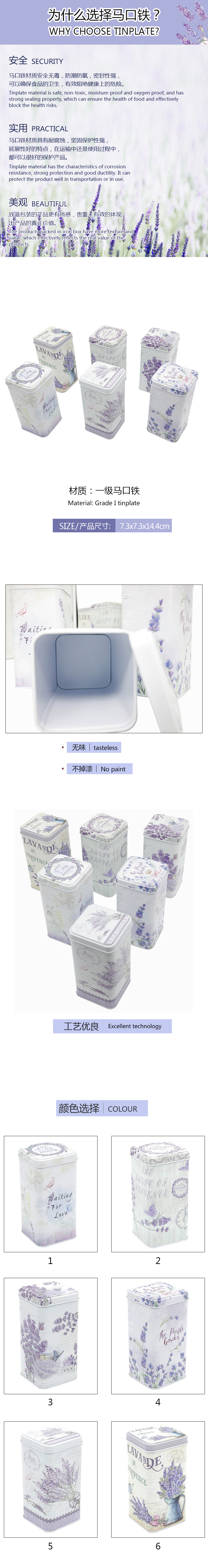 薰衣草方柱罐礼品罐收纳罐饼干铁罐马口铁罐大量现货 English | 投诉