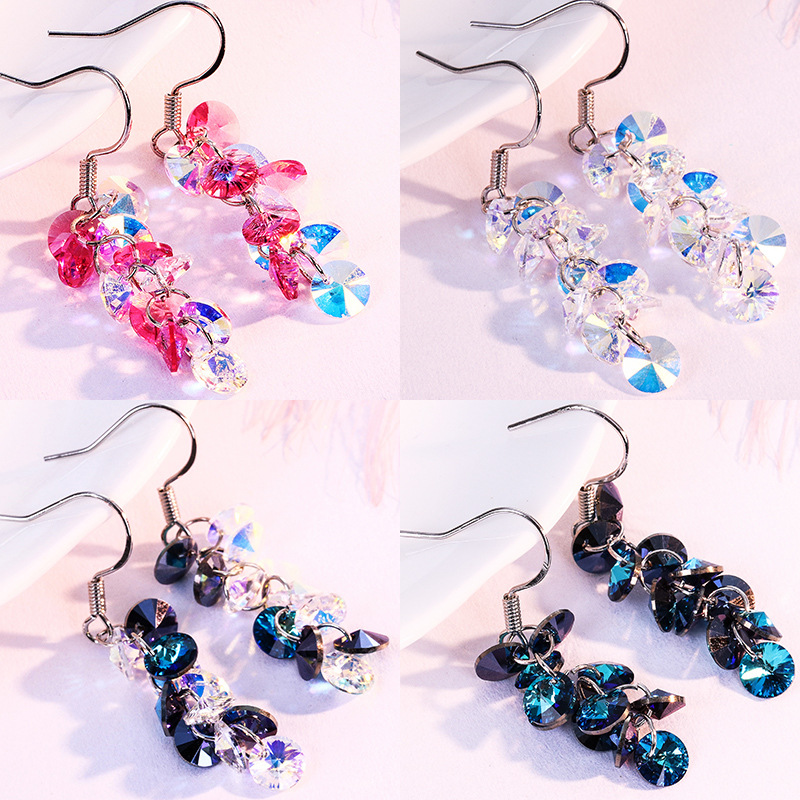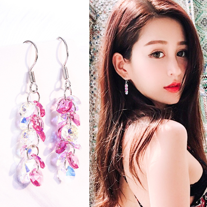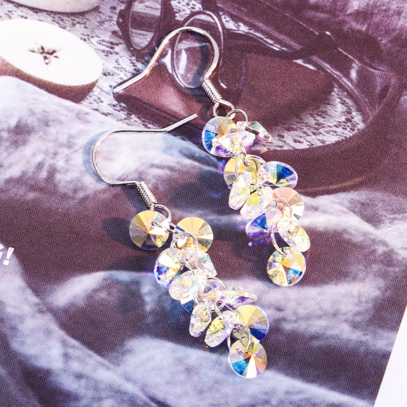 曼休妮奥地利人造水晶长款耳坠 925纯银耳钩女气质葡萄串闪亮耳环 English | 投诉