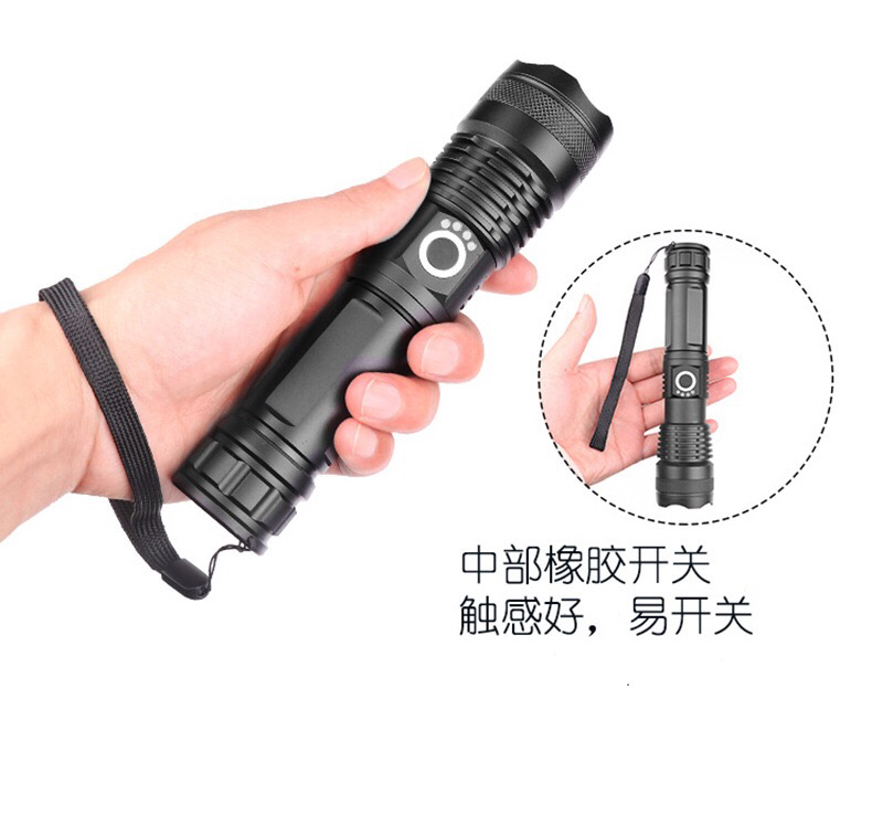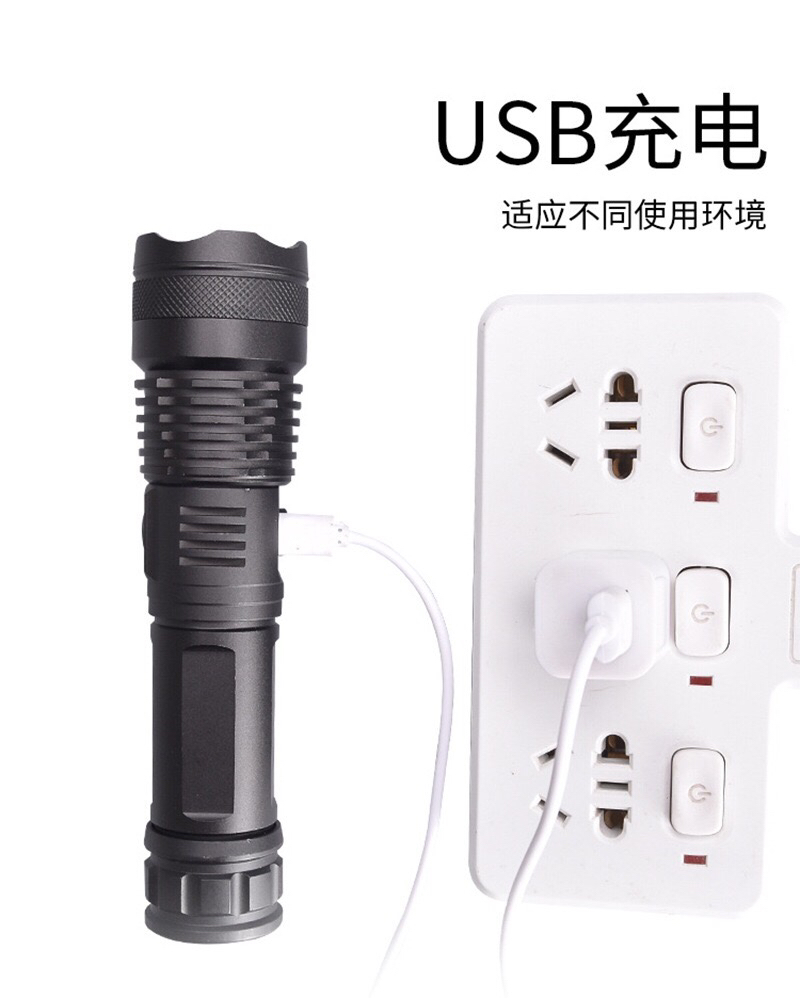 多功能led铝合金手电筒P50灯泡超亮伸缩变焦USB充电户外