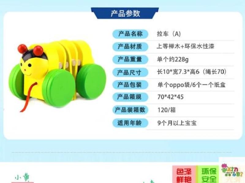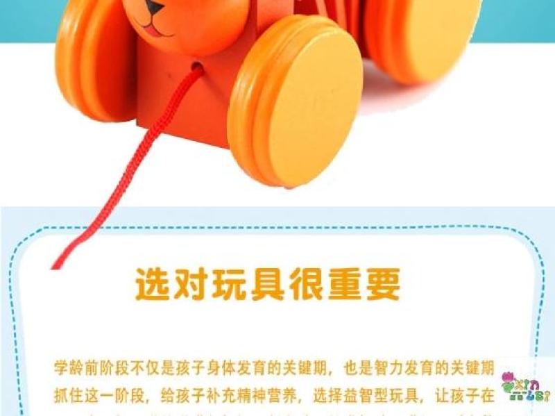 木制卡通动物拉车儿童手牵绳拉车学步车早教益智玩具 English | 投诉