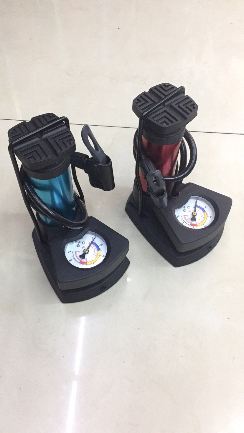 新式单筒脚踩气筒/自行车脚踏车气筒/带表充气泵/ 短款铝合金气筒 投诉