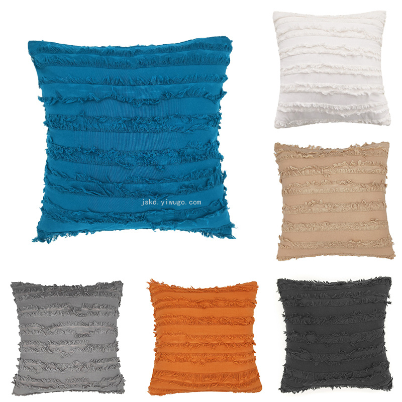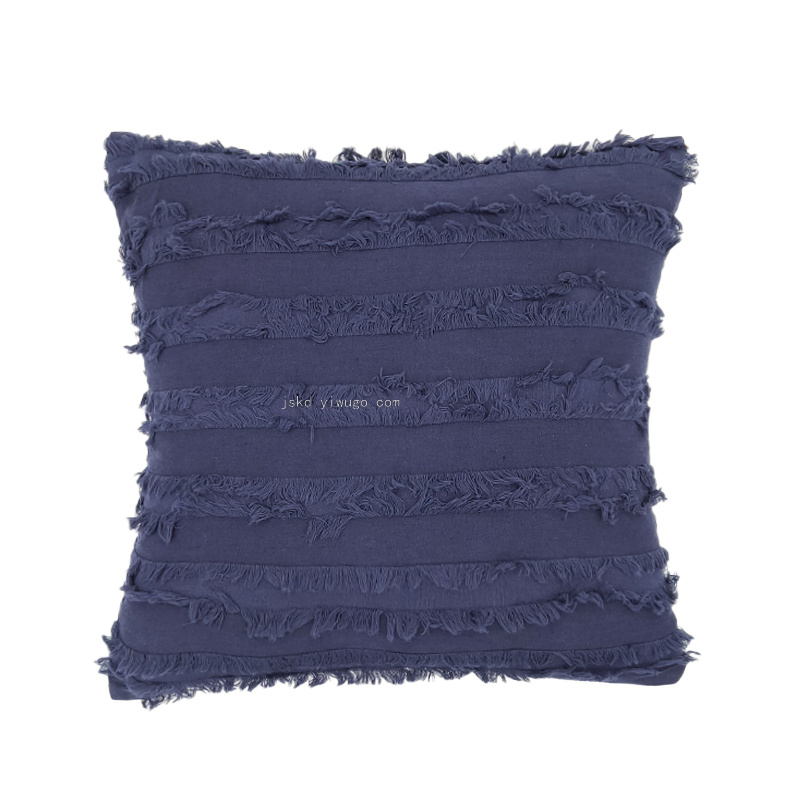 摩洛哥 布艺抱枕方形纯色棉麻靠枕背靠剪花流苏沙发抱枕靠垫客厅 投诉