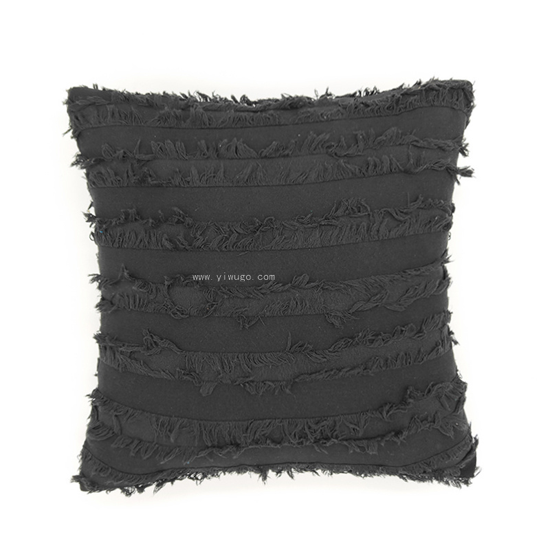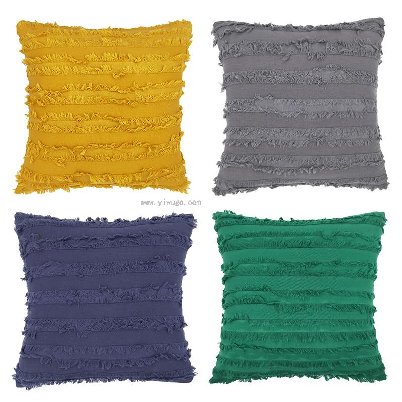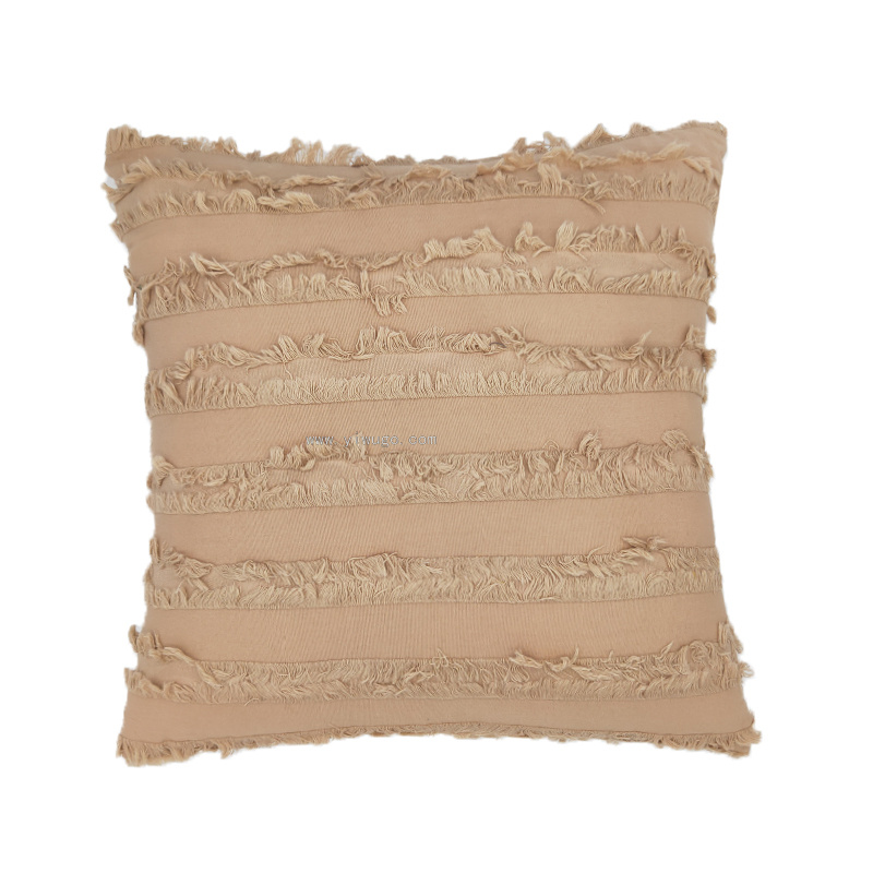 摩洛哥 布艺抱枕方形纯色棉麻靠枕背靠剪花流苏沙发抱枕靠垫客厅 投诉