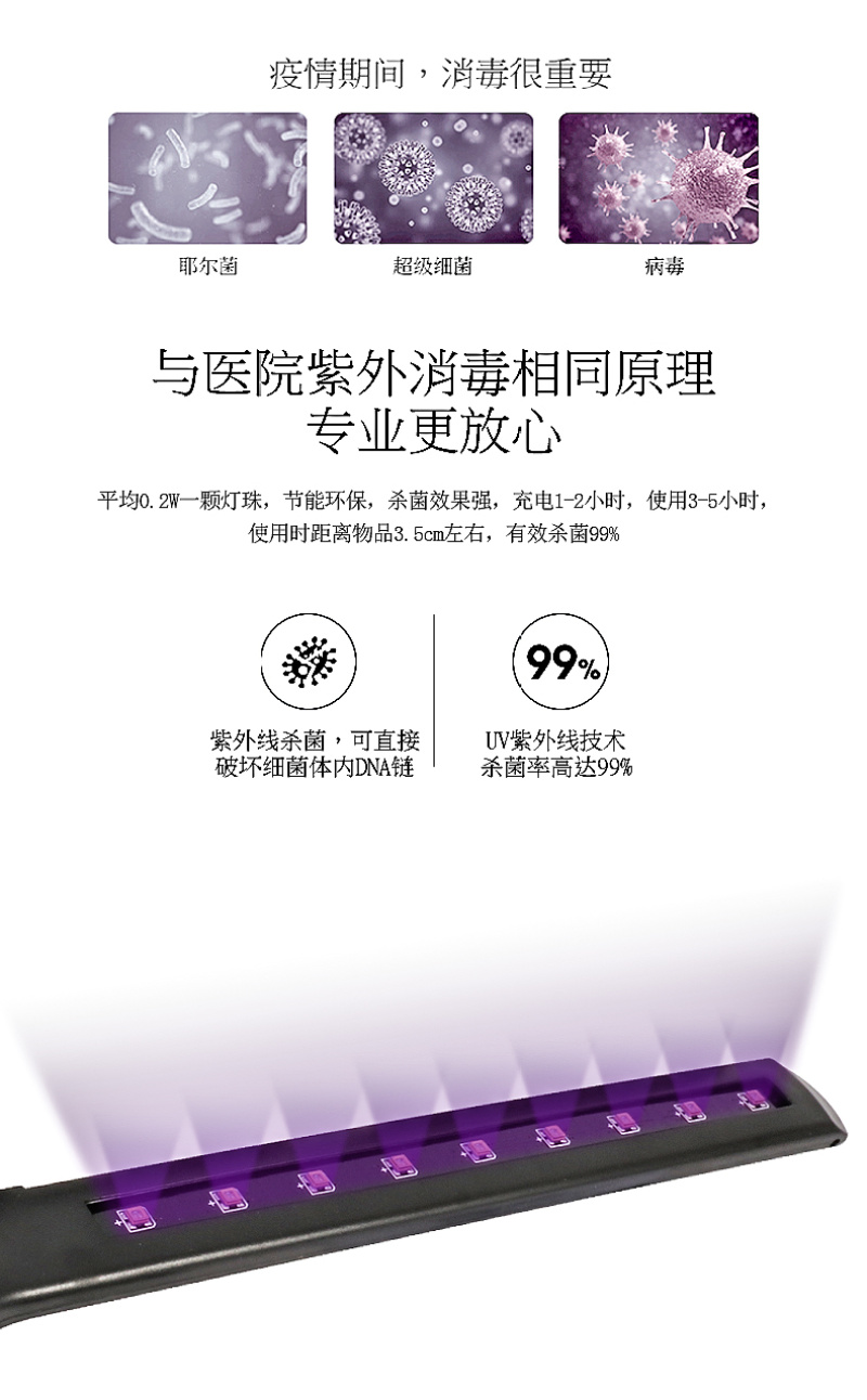 紫外线消毒棒UV紫光杀菌棒家用便携式手持消毒灯UV杀菌灯现货专供出口 English | 投诉