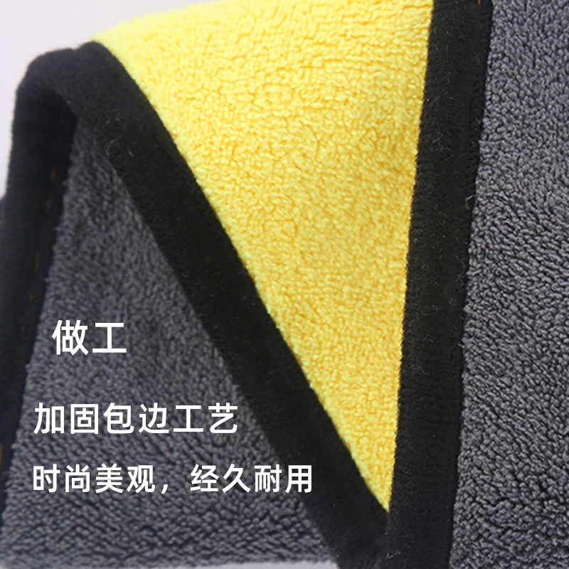 本款为3个不同克重,分别为500g/㎡--600g/㎡--800g/㎡,三款均为高密珊瑚绒材质,吸水性很强,不会掉毛!适用于洗车-擦地-擦家具等家车两用!