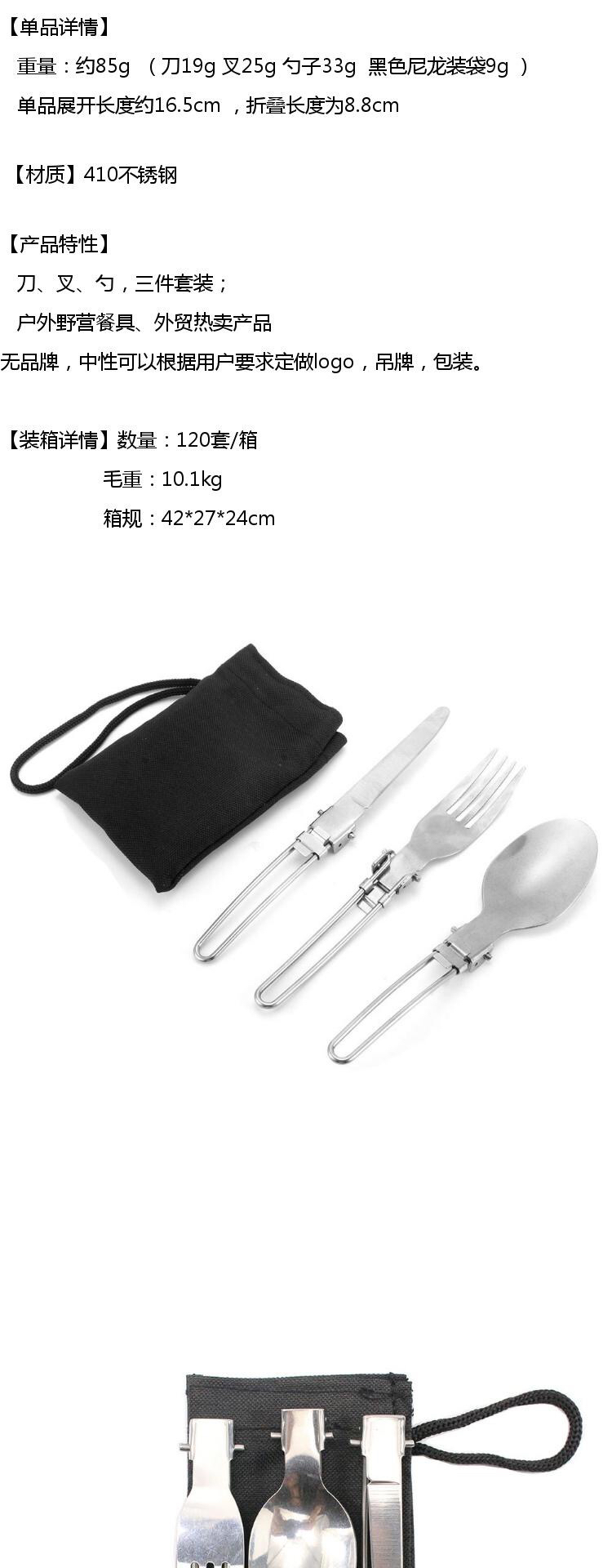 户外不锈钢折叠餐具三件套便携折叠刀叉勺不锈钢旅行折叠餐具