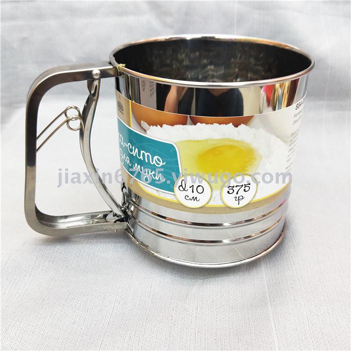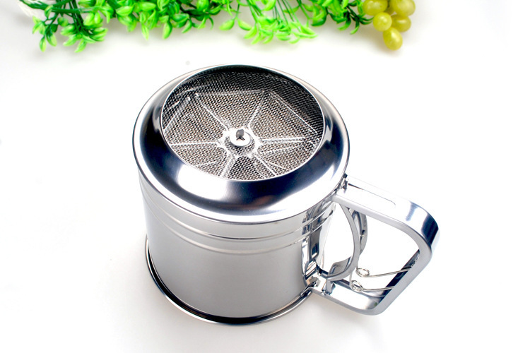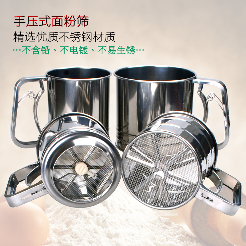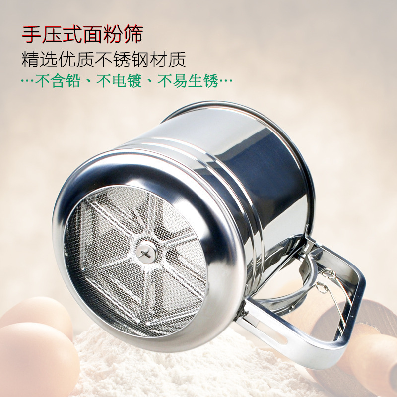 大号双层面粉筛 不锈钢手动粉筛杯 不锈钢面粉过滤器