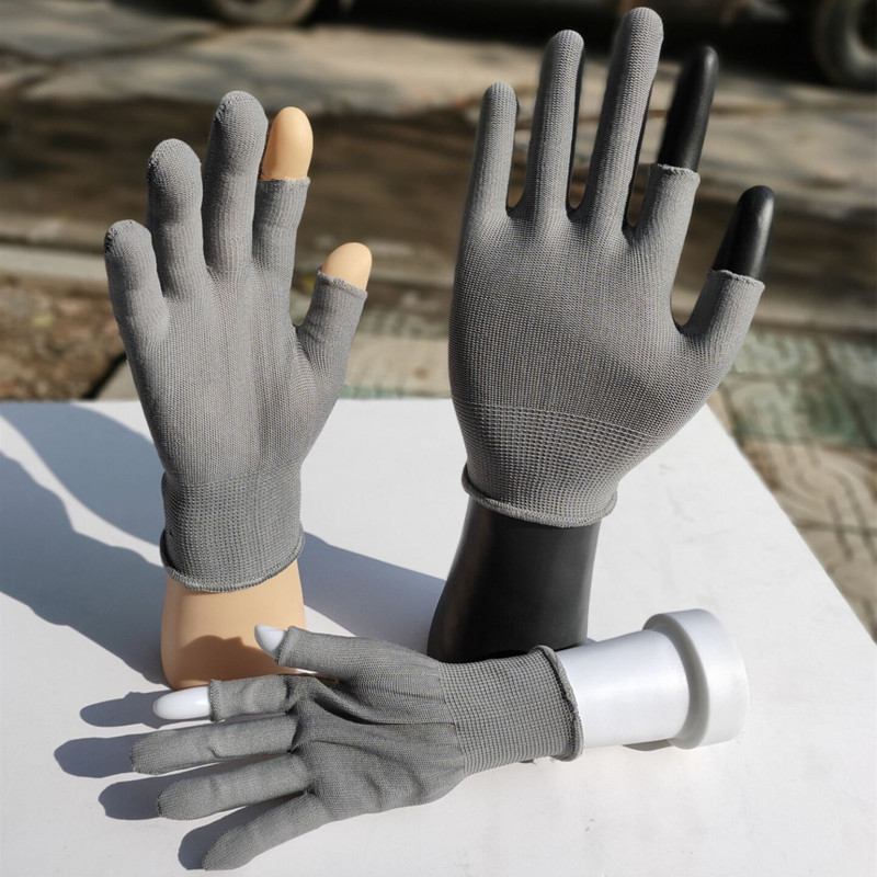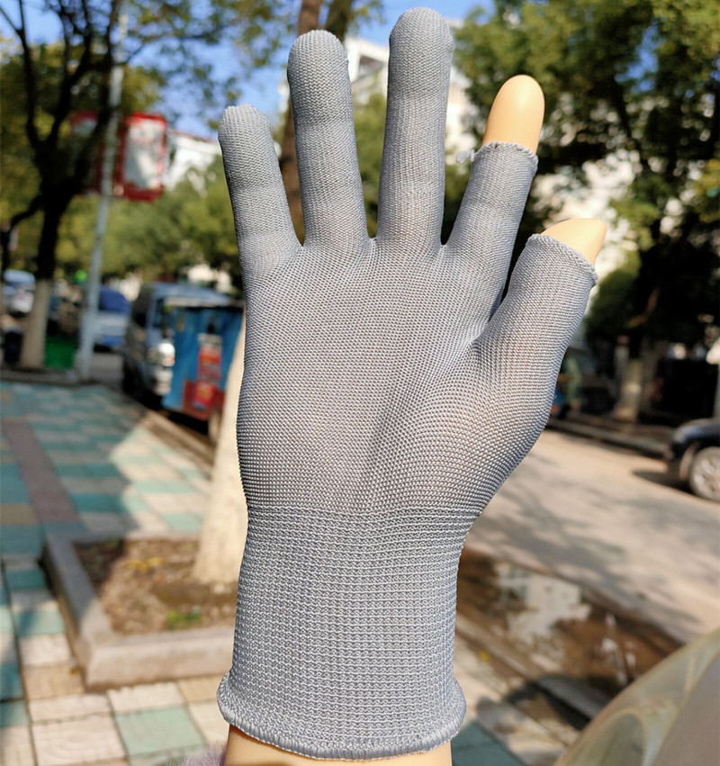 灰色尼龙露两指手套