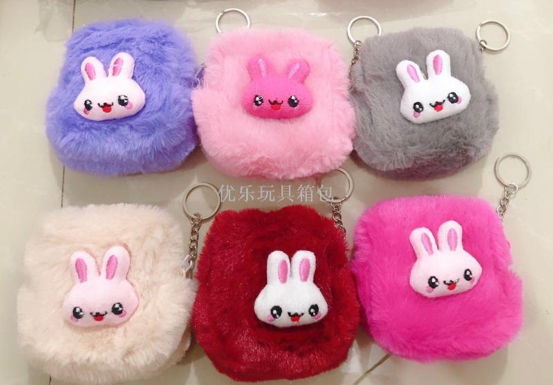 长毛绒兔耳零钱包 儿童可爱兔子钥匙扣零钱包