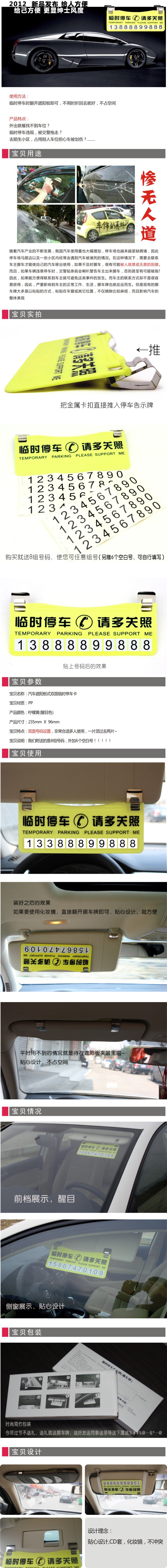 产品名称:汽车遮阳板式双面临时停车卡