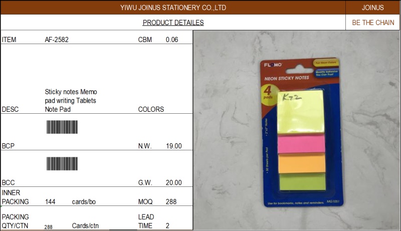 自粘便利贴彩条告示贴便签留言本Sticky notes Memo pad AF-2582 投诉