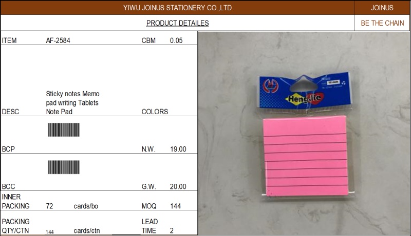 自粘便利贴彩条告示贴便签留言本Sticky notes Memo pad  AF-2584