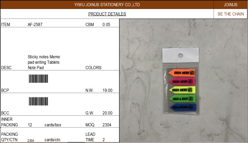 自粘便利贴彩条告示贴便签留言本Sticky notes Memo pad AF-2587 投诉