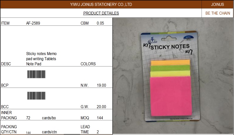 自粘便利贴彩条告示贴便签留言本Sticky notes Memo pad AF-2589 投诉