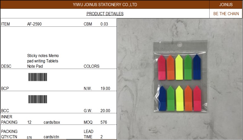 自粘便利贴彩条告示贴便签留言本Sticky notes Memo pad AF-2590 投诉
