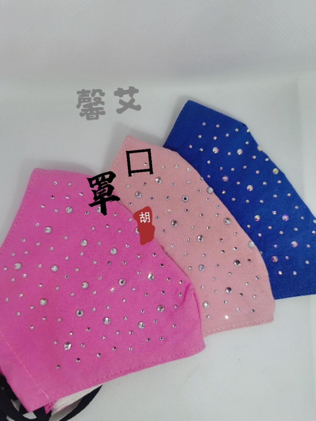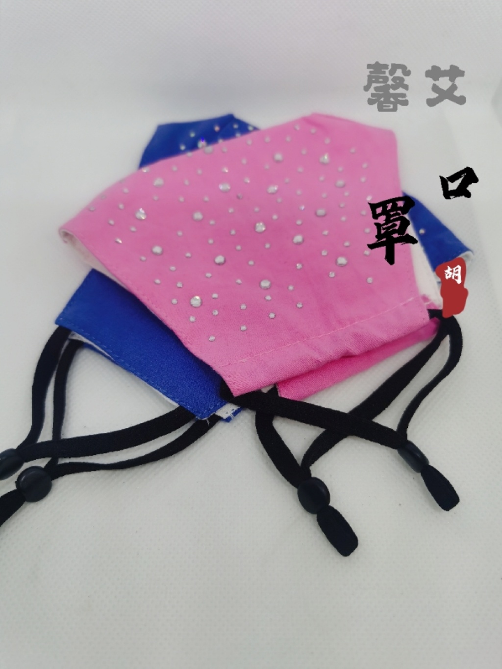 口罩厂家直销三色混装口罩烫钻带钻奥钻双面钻辅料口罩带绳无纺布