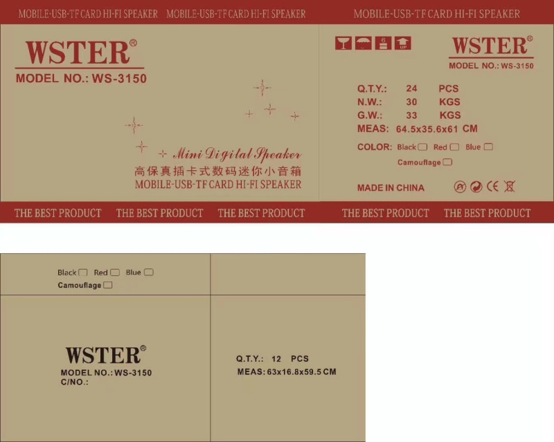 WS-3150 24pcs N W : 30 G W : 33 Size :64.5*35.6*61