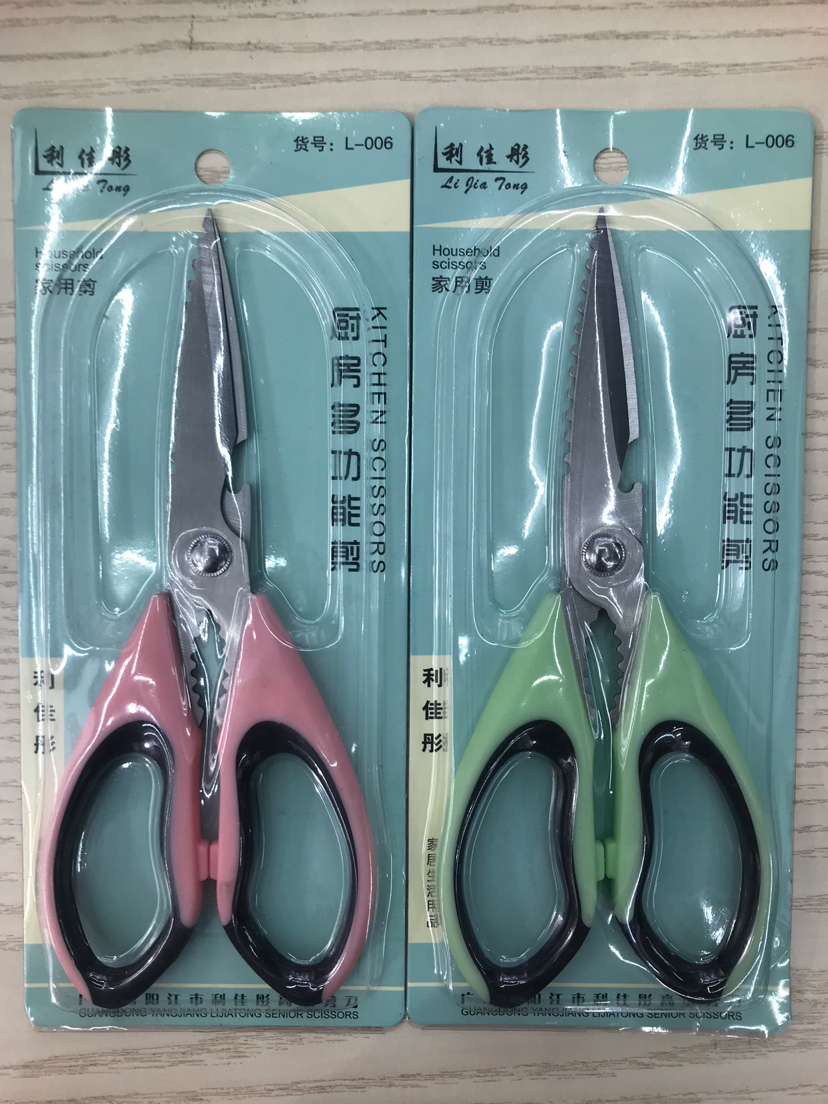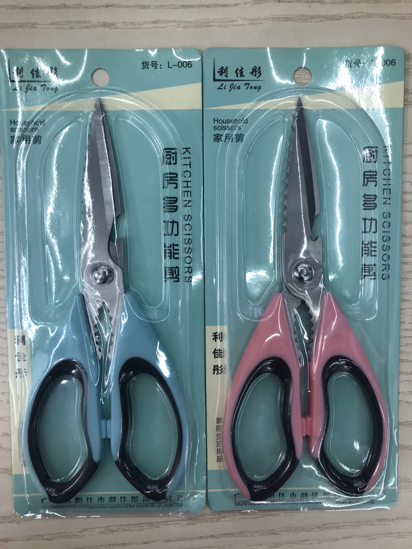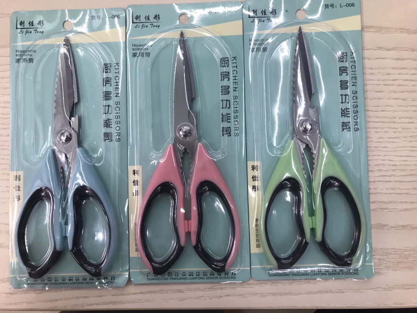 供应多功能厨房剪刀 家用剪刀 多用剪 混色插卡