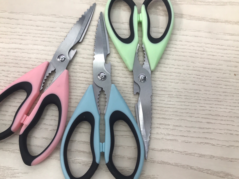 供应多功能厨房剪刀 家用剪刀 多用剪 混色插卡 投诉
