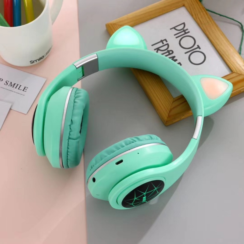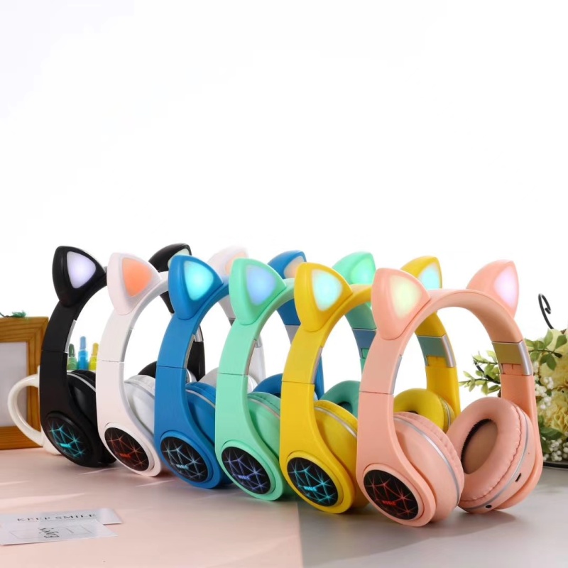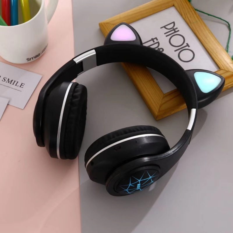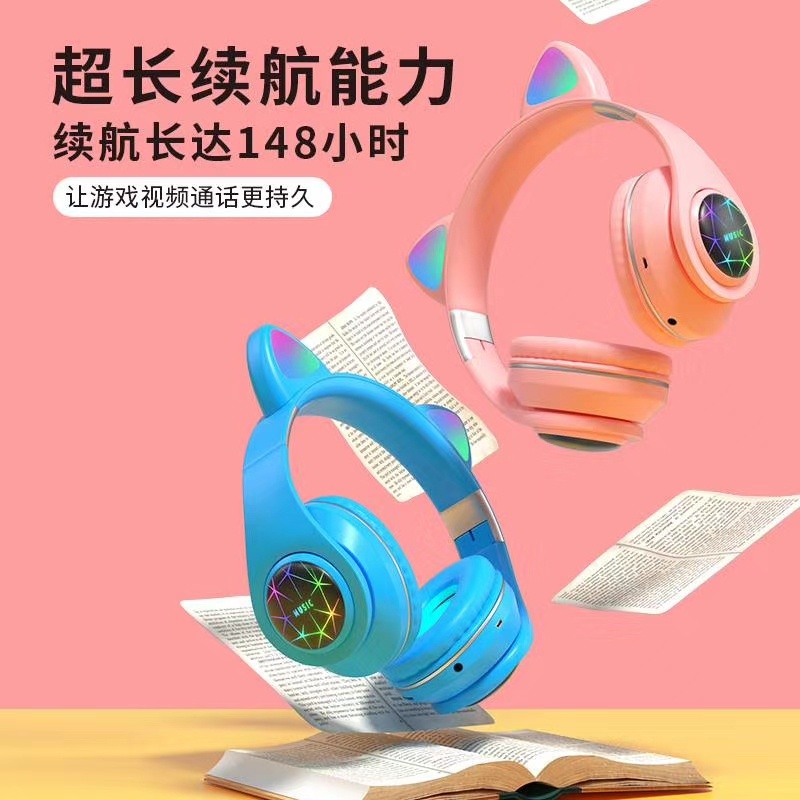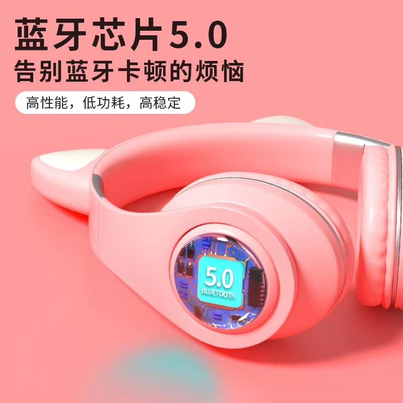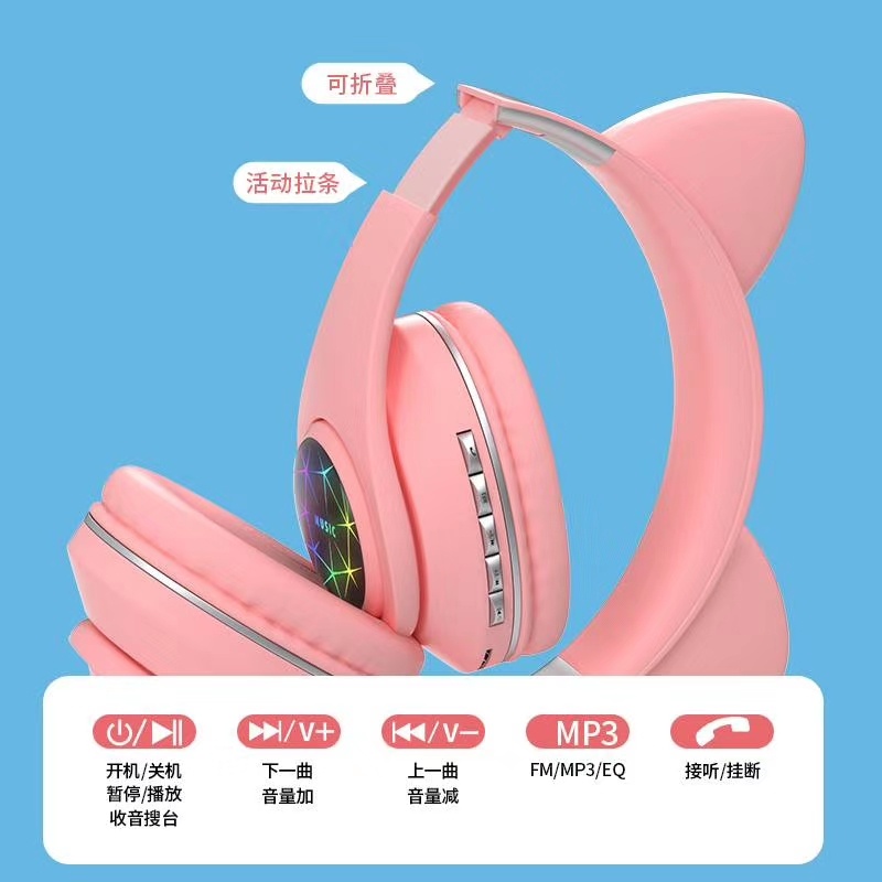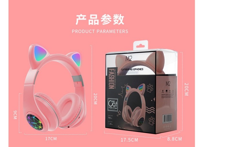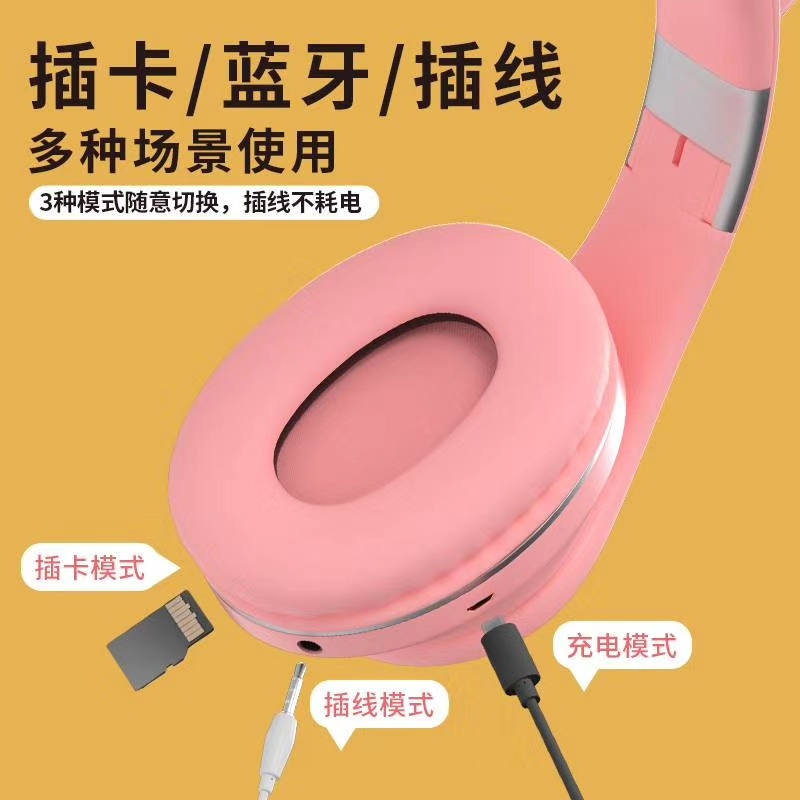 M2猫耳头戴式蓝牙 7彩渐变发光猫耳 多种图案选择/可定制图案,三种使用模式:插卡/蓝牙/插线 超长续航