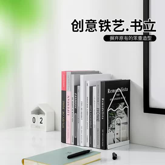 工厂直销北欧风简约铁艺书立办公桌面书籍收纳书立架可贴牌
