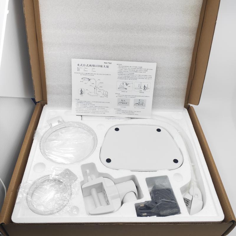 【产品包装】:瓦楞牛皮黄包装+泡沫+opp+加重底座+卓沿夹+2/5倍镜片+240V圆插+中英文说明书